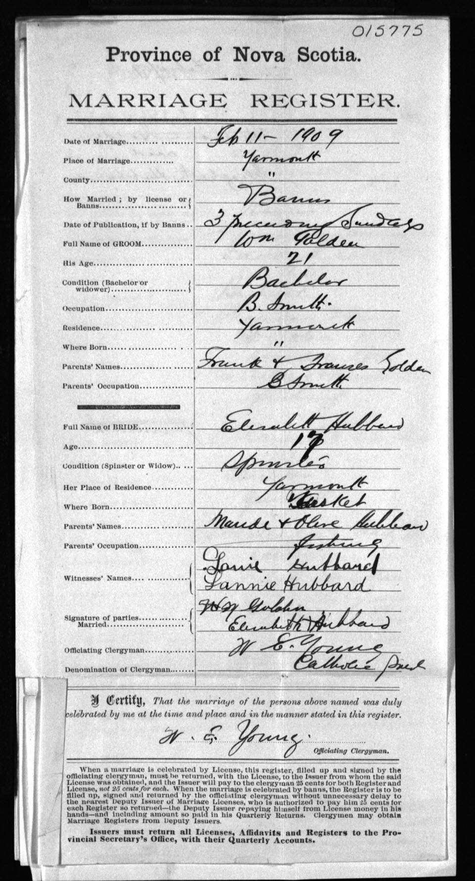 Registration: Year: 1909 number: 15775
