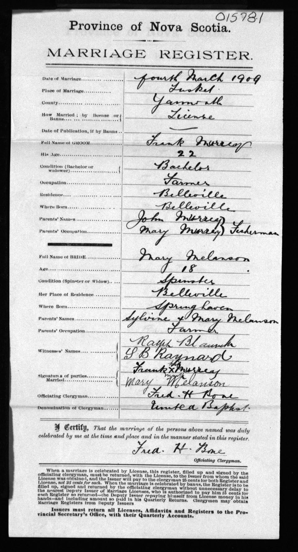 Registration: Year: 1909 number: 15781