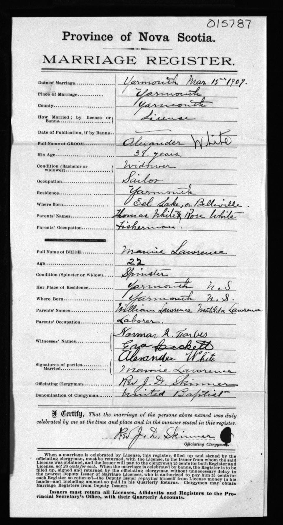Registration: Year: 1909 number: 15787