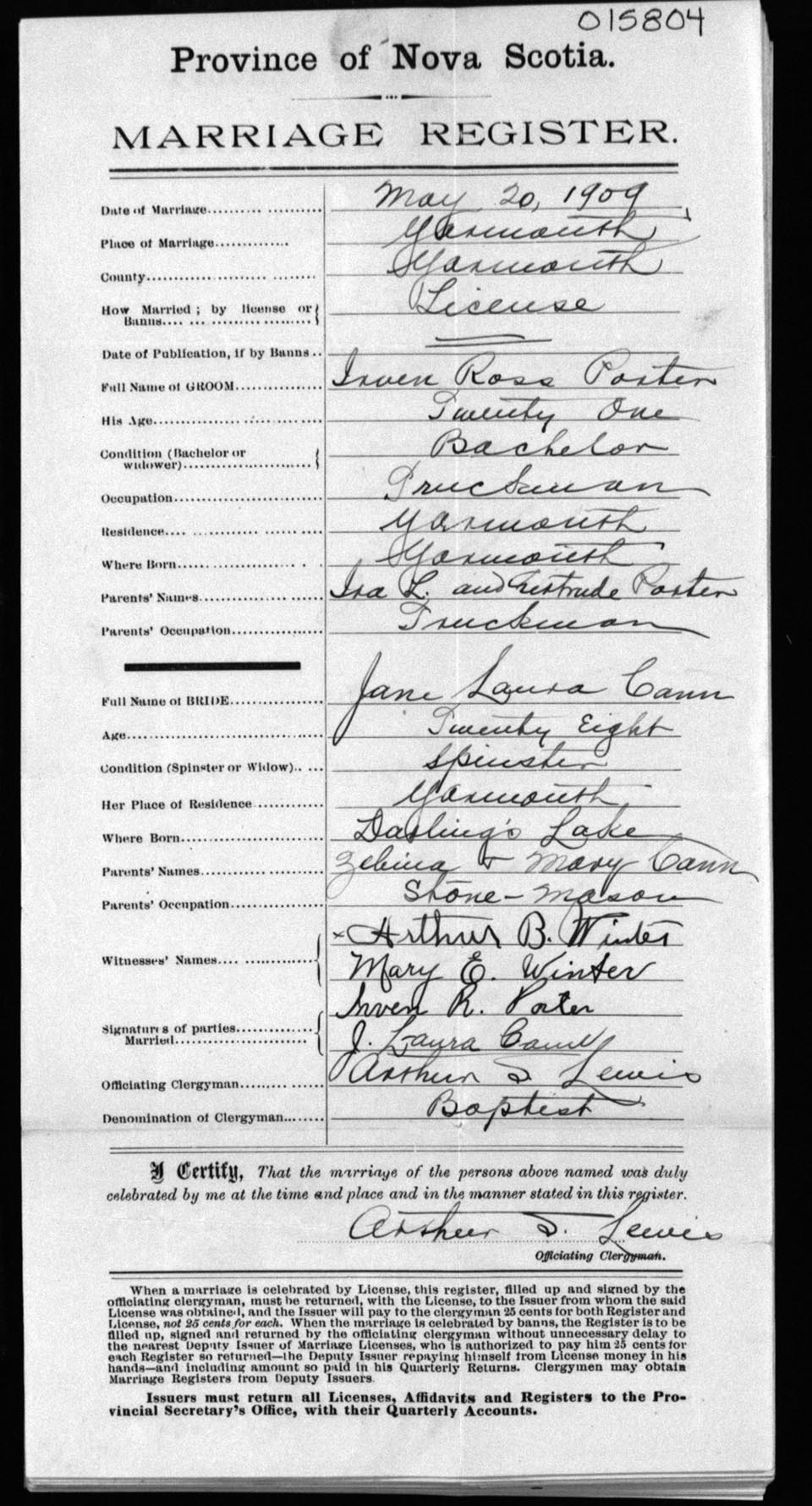 Registration: Year: 1909 number: 15804