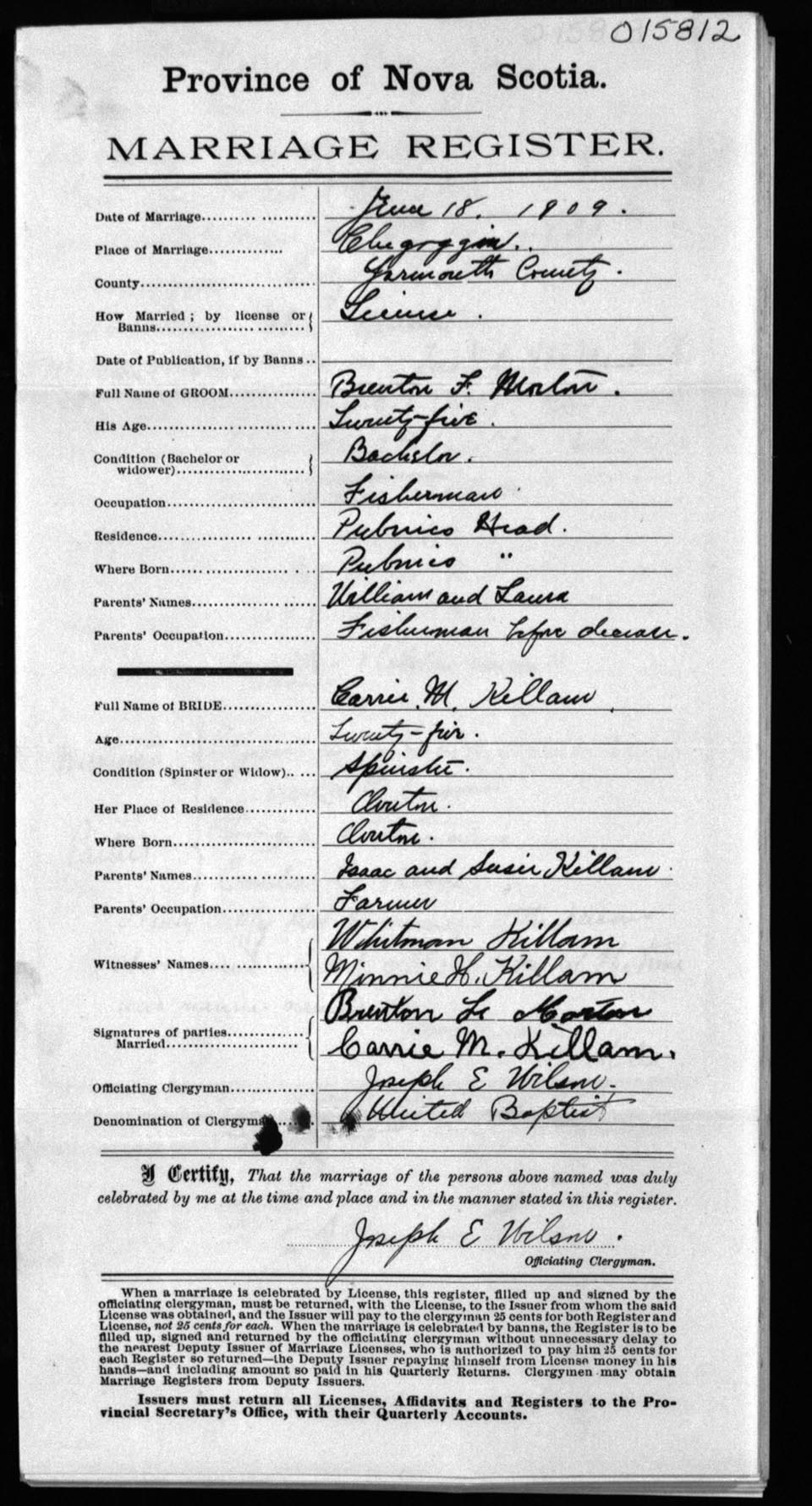 Registration: Year: 1909 number: 15812