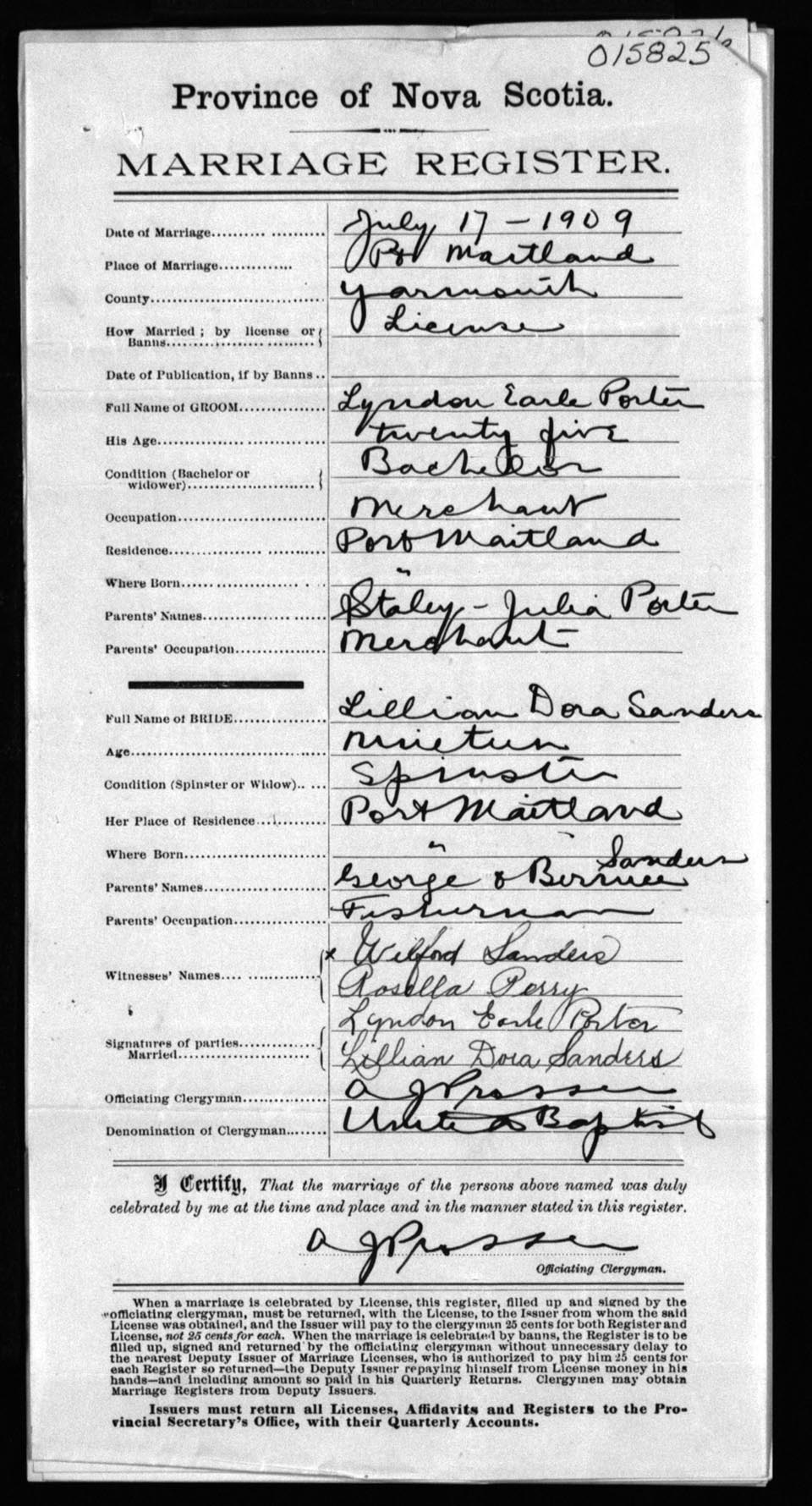 Registration: Year: 1909 number: 15825