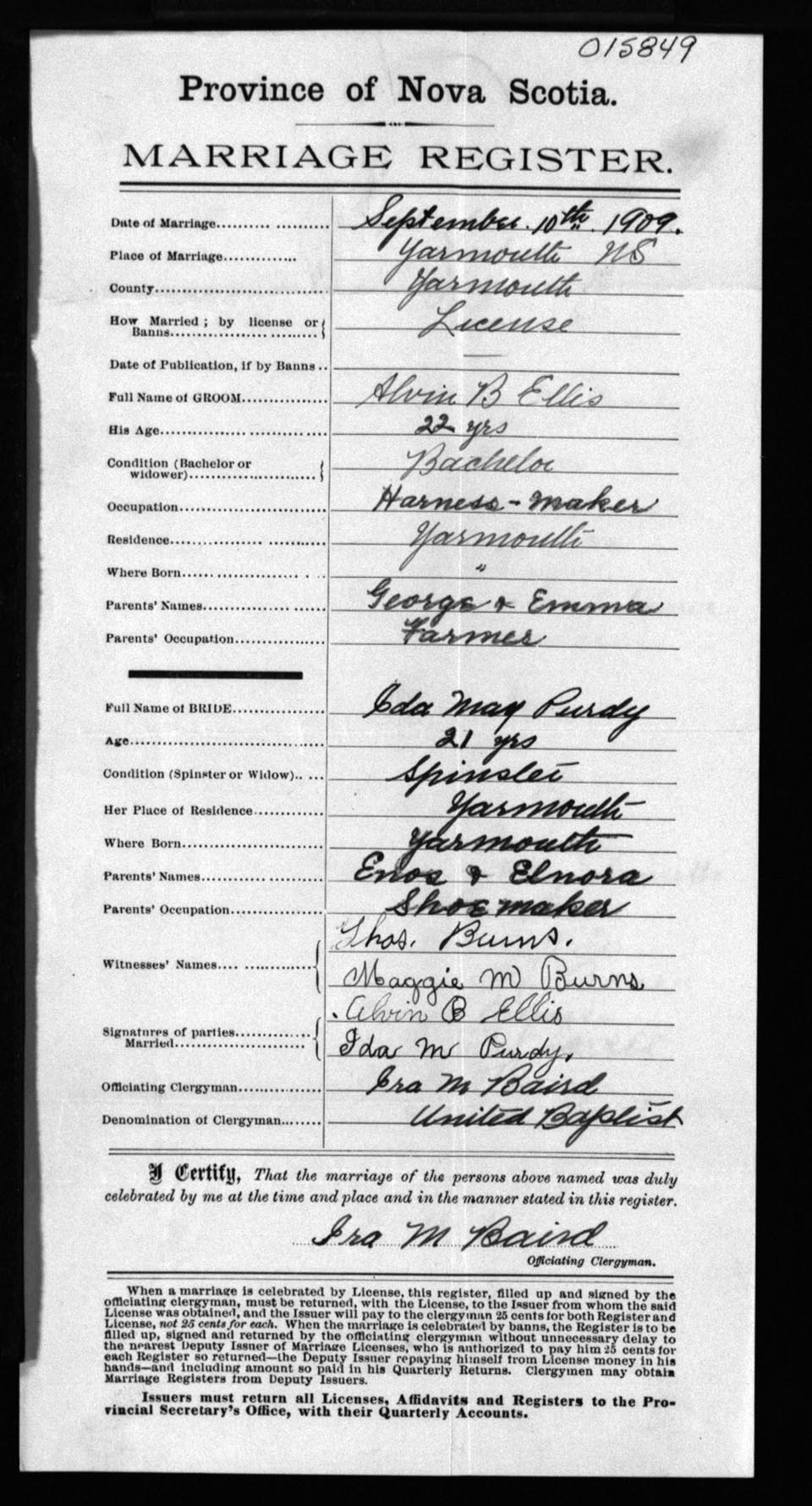 Registration: Year: 1909 number: 15849