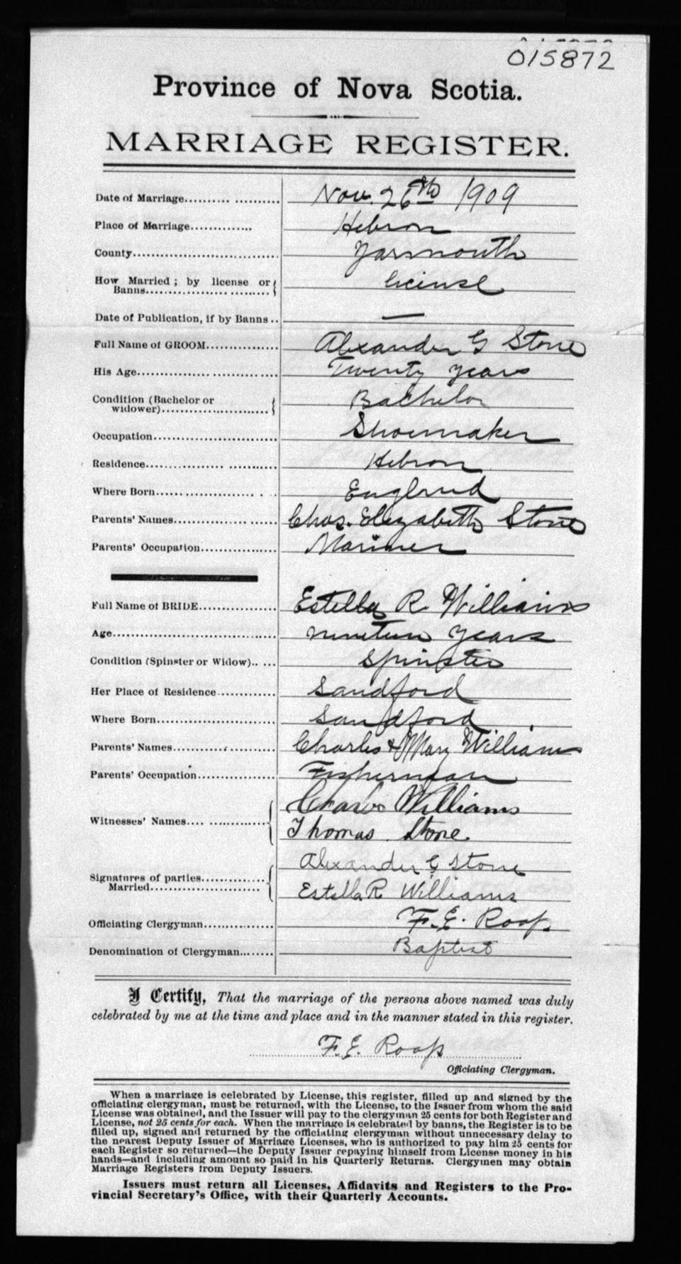 Registration: Year: 1909 number: 15872