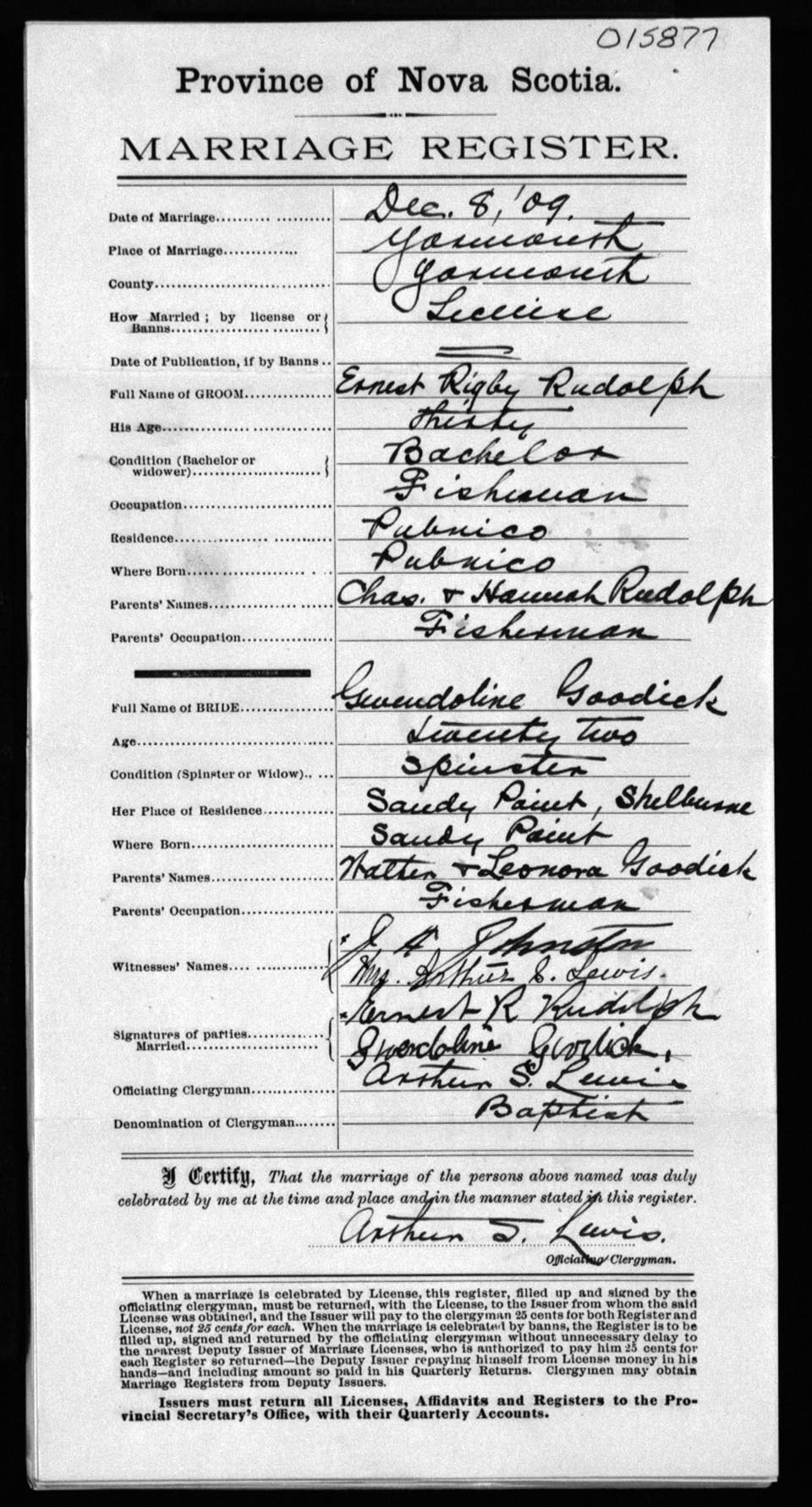 Registration: Year: 1909 number: 15877