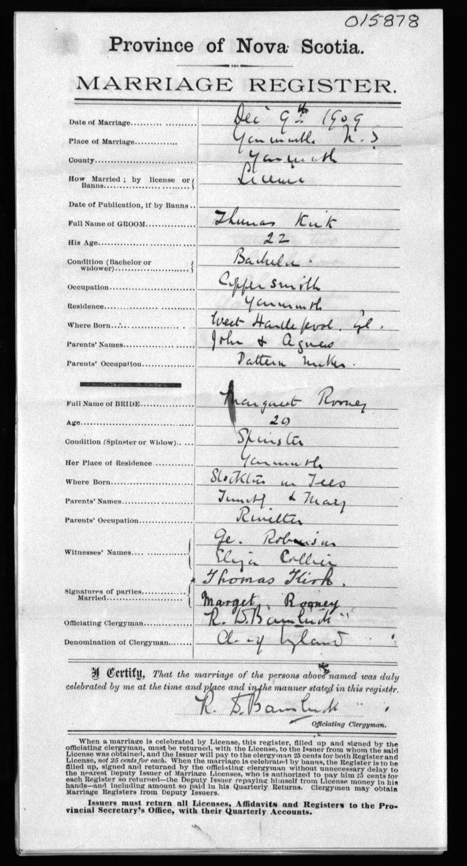 Registration: Year: 1909 number: 15878