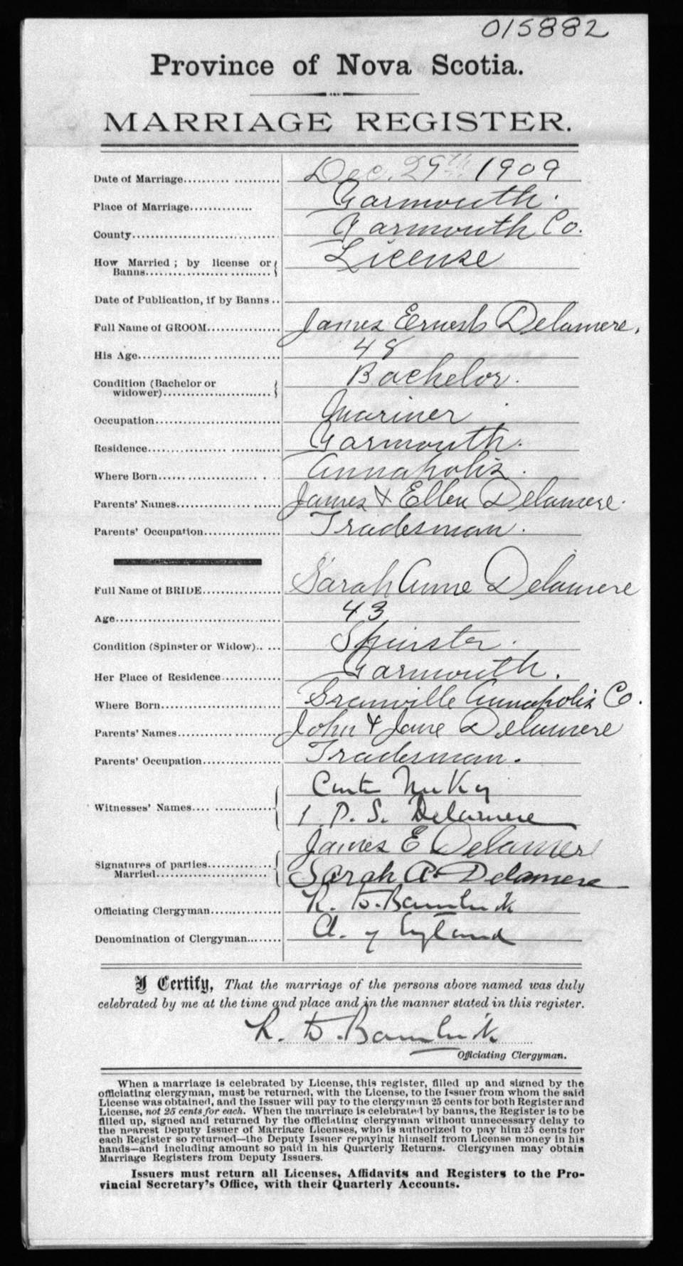Registration: Year: 1909 number: 15882
