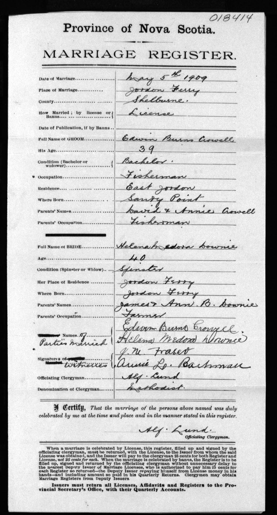 Registration: Year: 1909 number: 18414