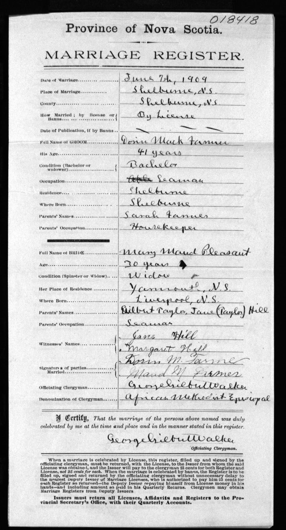 Registration: Year: 1909 number: 18418