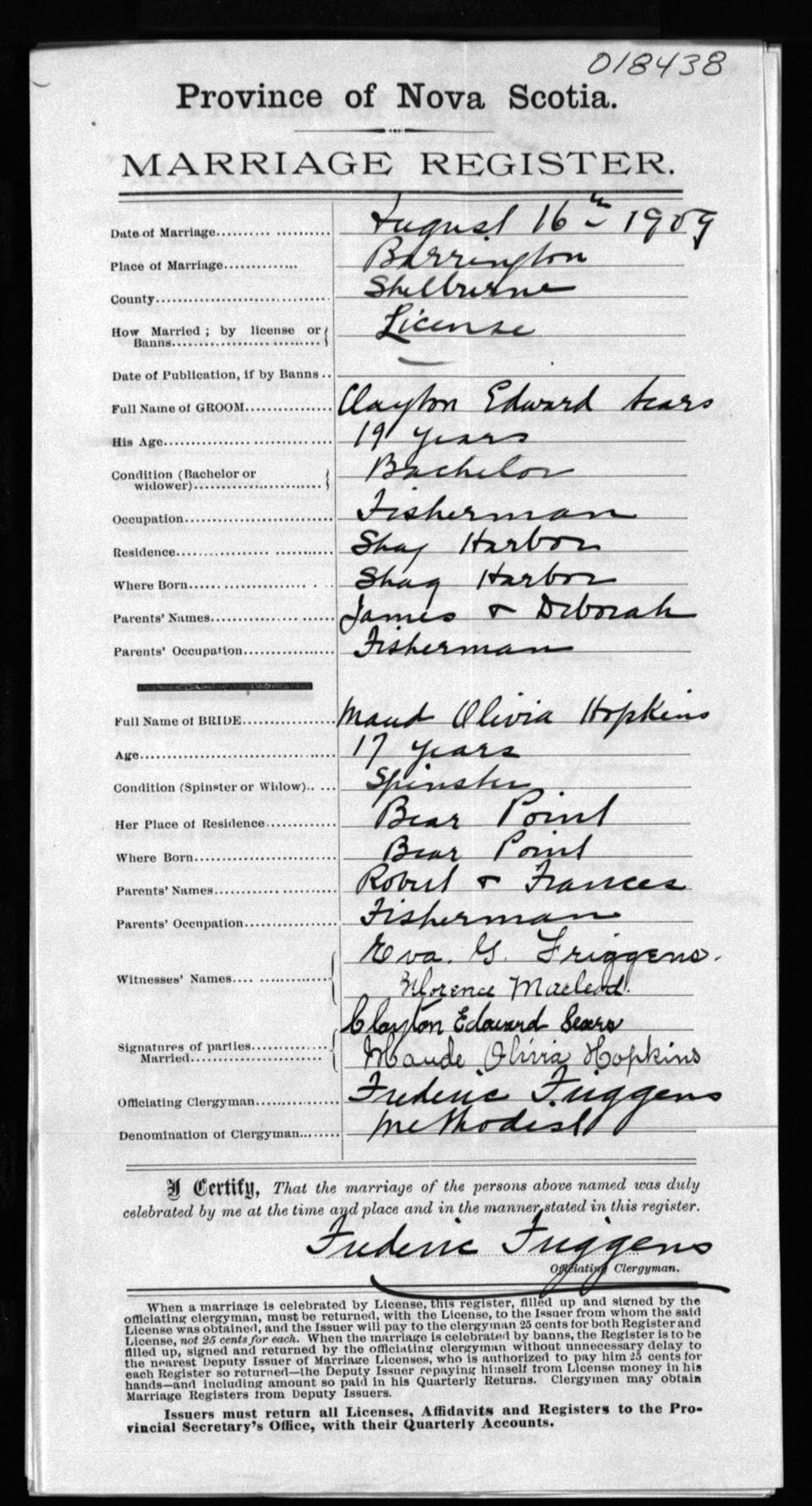 Registration: Year: 1909 number: 18438
