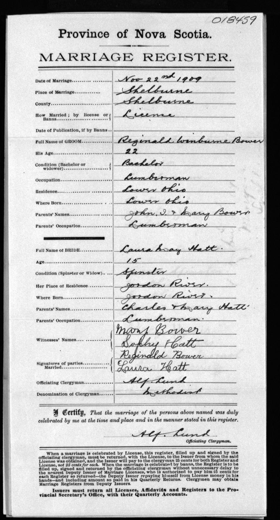 Registration: Year: 1909 number: 18459