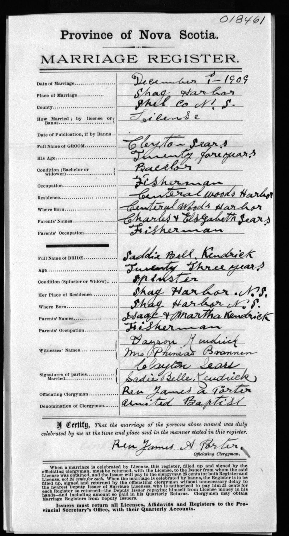 Registration: Year: 1909 number: 18461