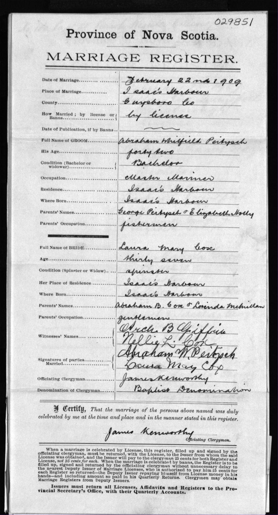 Registration: Year: 1909 number: 29851