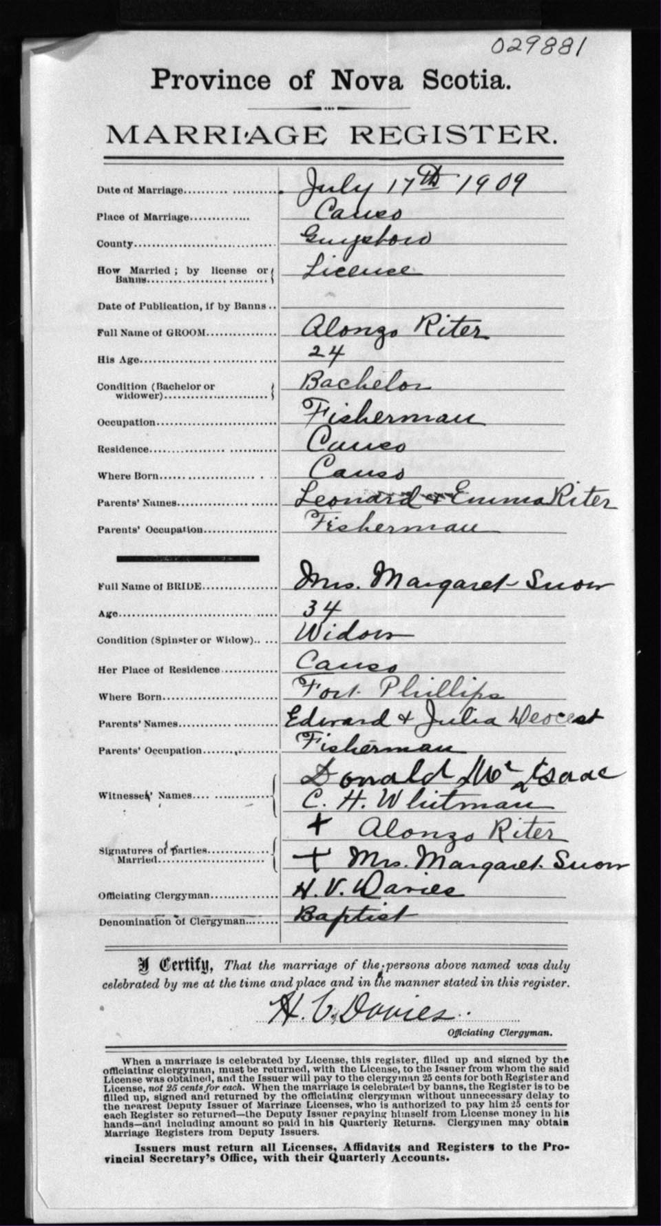 Registration: Year: 1909 number: 29881