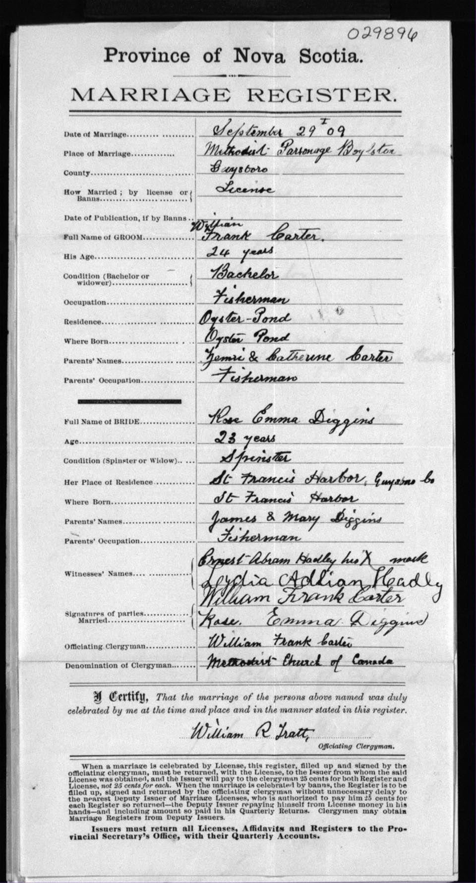 Registration: Year: 1909 number: 29896