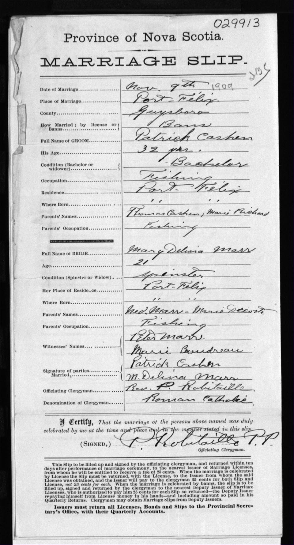 Registration: Year: 1909 number: 29913
