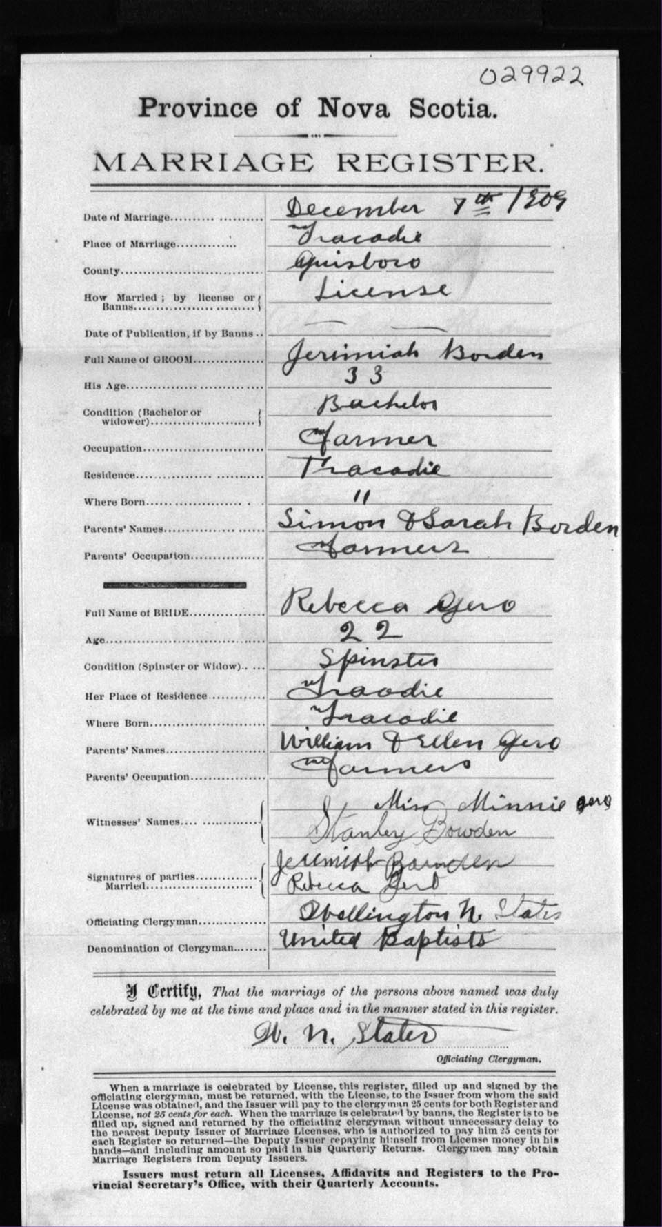 Registration: Year: 1909 number: 29922