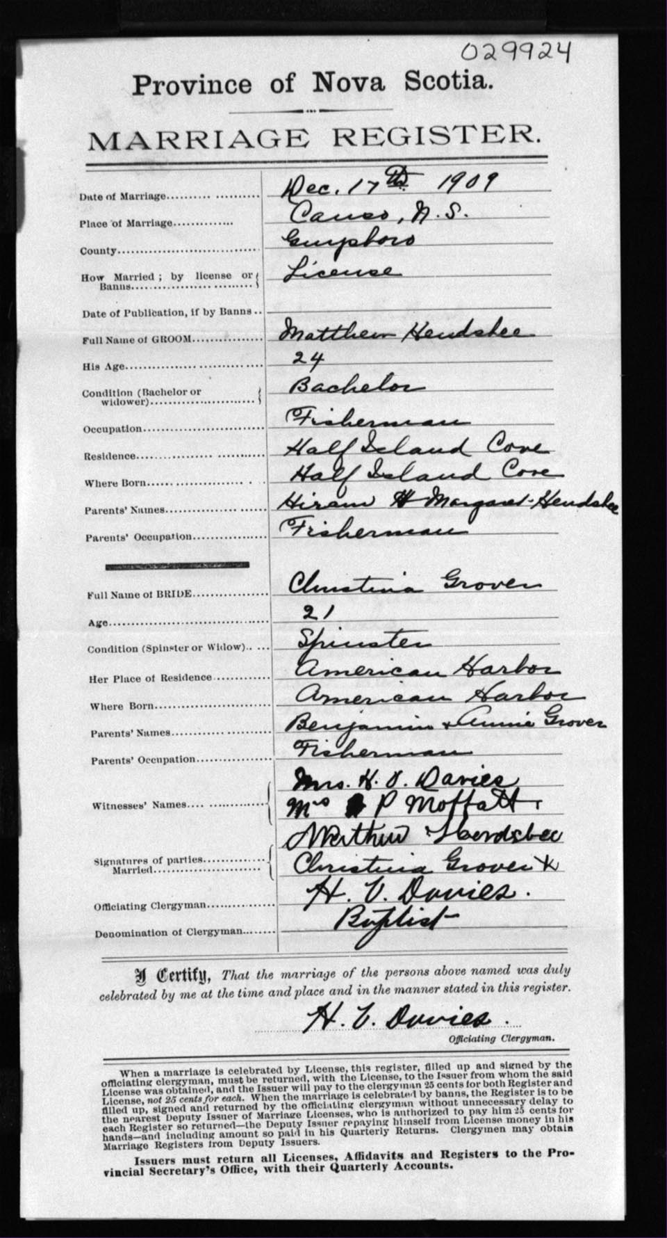 Registration: Year: 1909 number: 29924