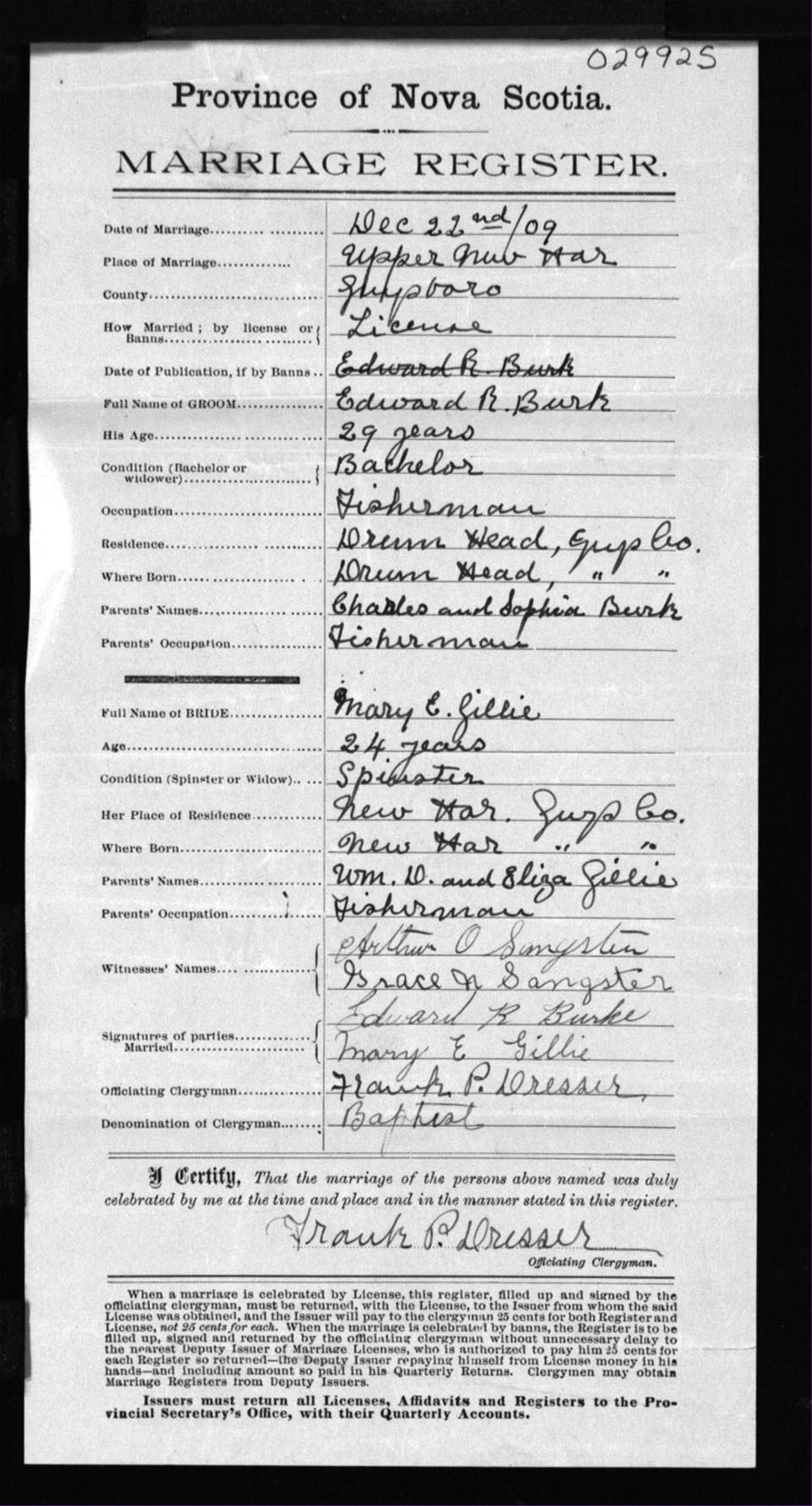 Registration: Year: 1909 number: 29925