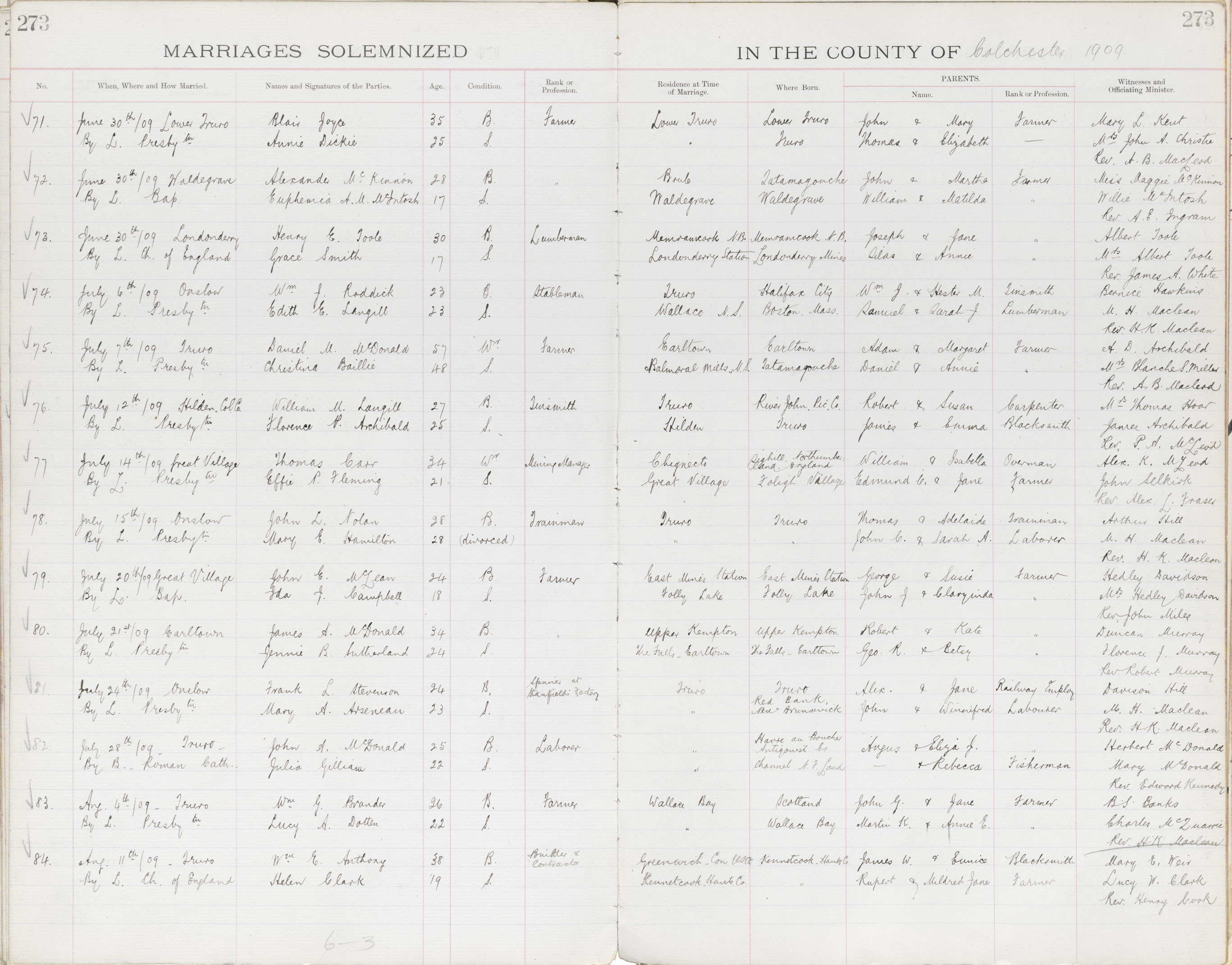 Registration: Year: 1909 book: 1807 page: 273 number: 84