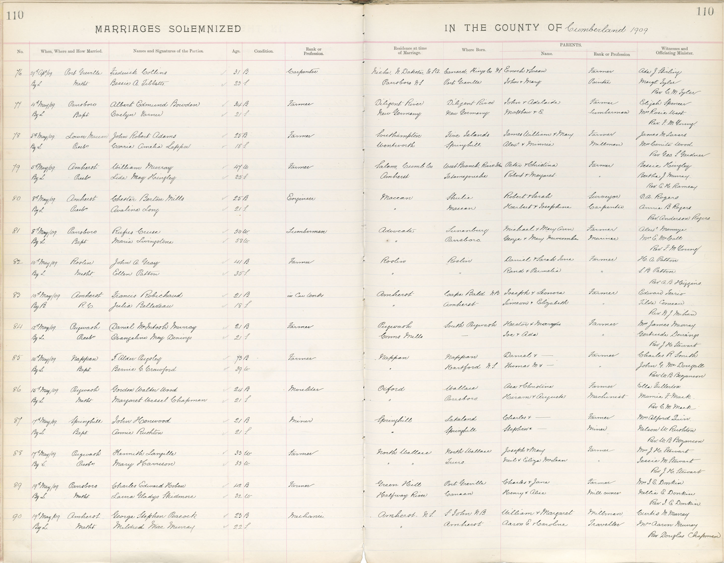 Registration: Year: 1909 book: 1811 page: 110 number: 90