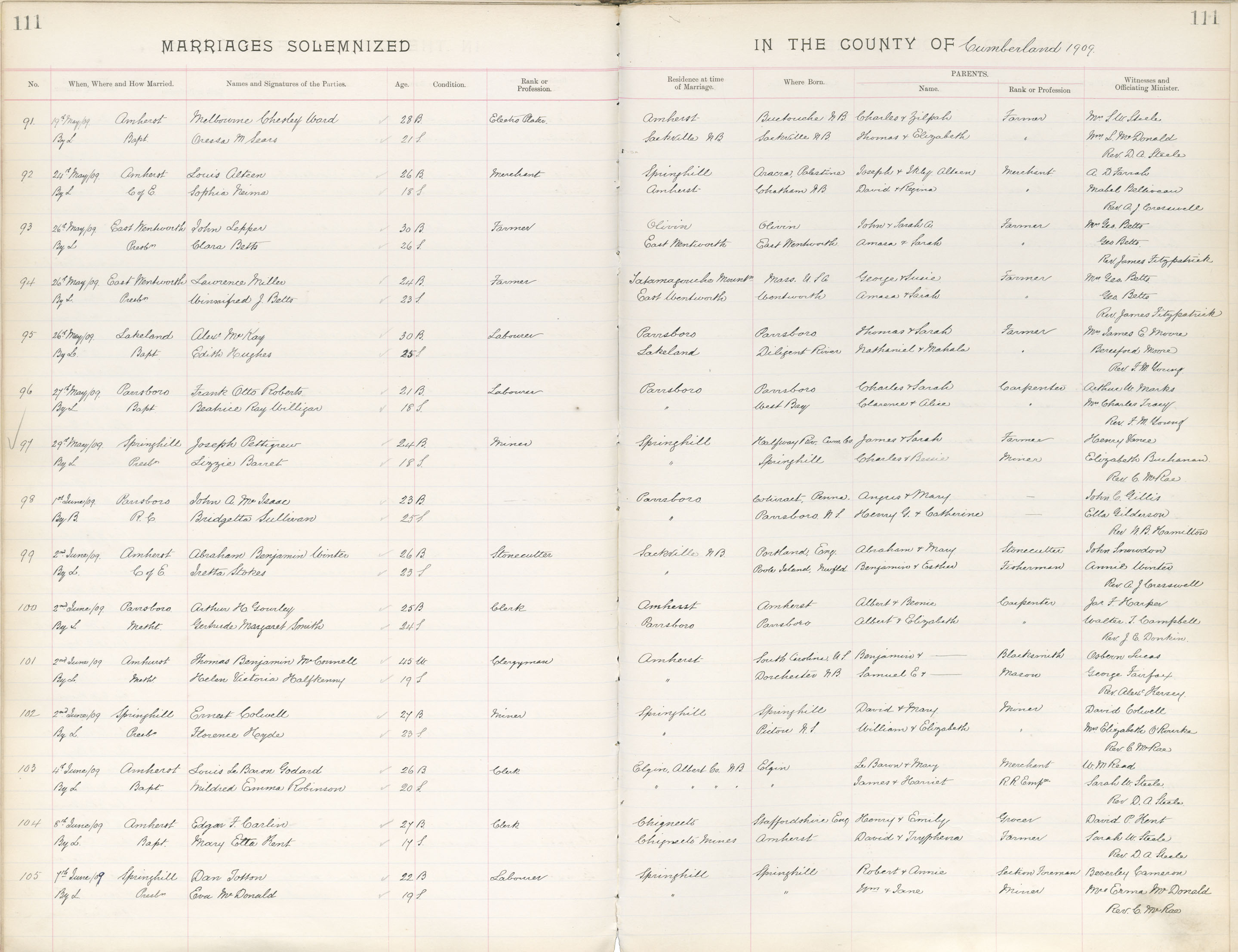 Registration: Year: 1909 book: 1811 page: 111 number: 91