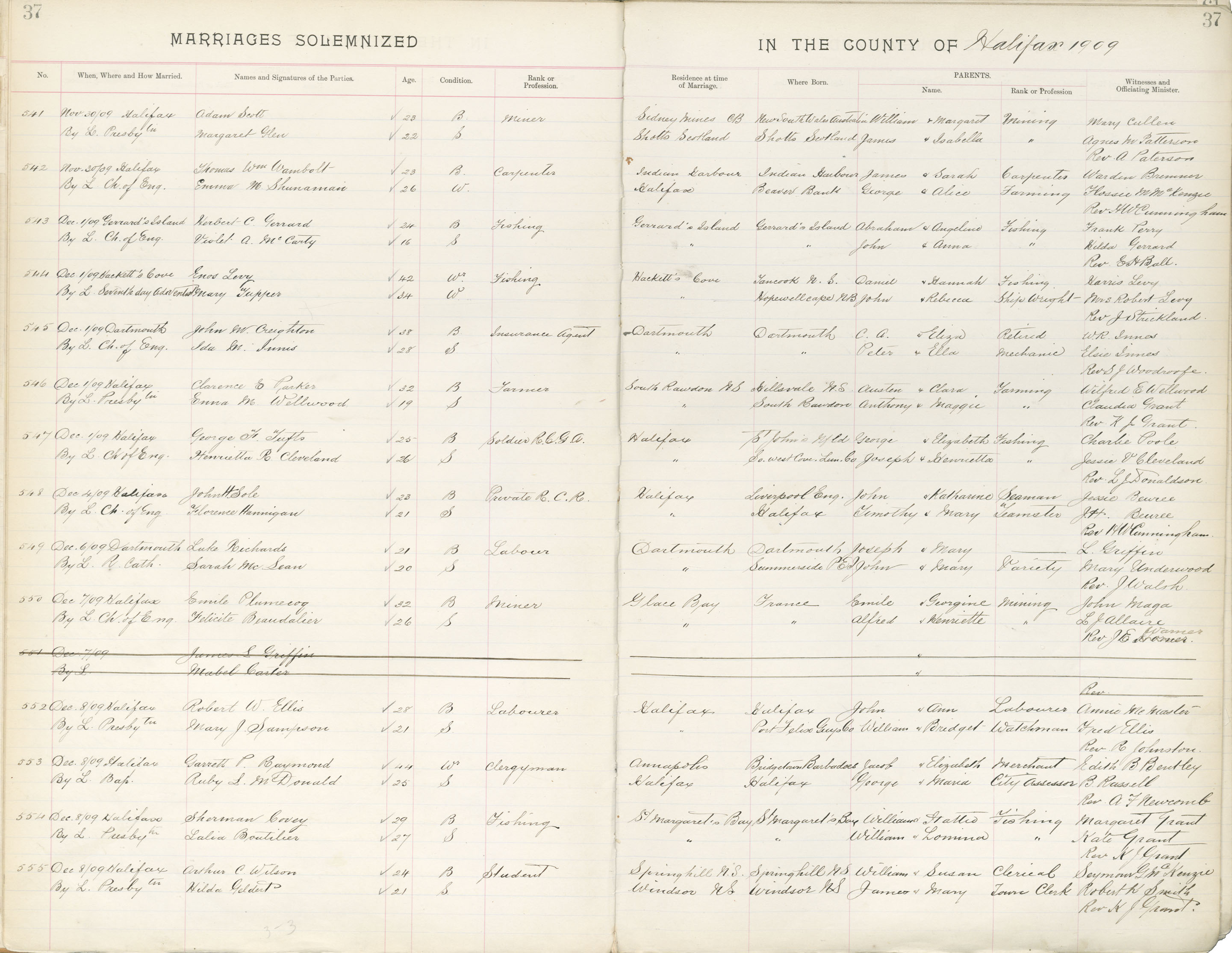 Registration: Year: 1909 book: 1821 page: 37 number: 555