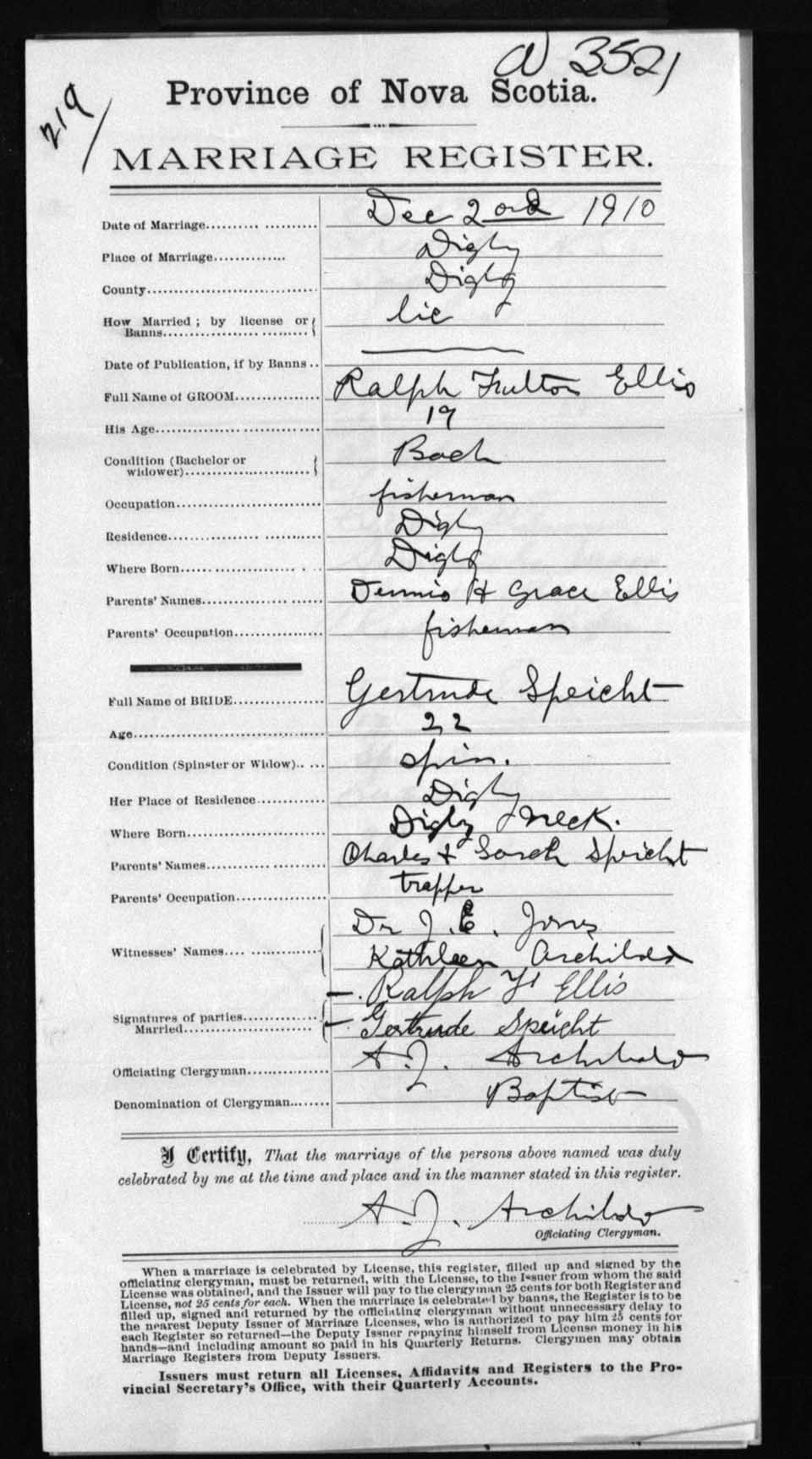 Registration: Year: 1910 number: 3521