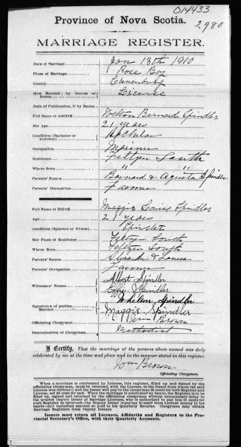 Registration: Year: 1910 number: 14433