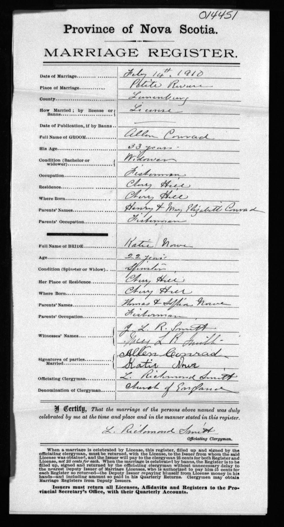 Registration: Year: 1910 number: 14451