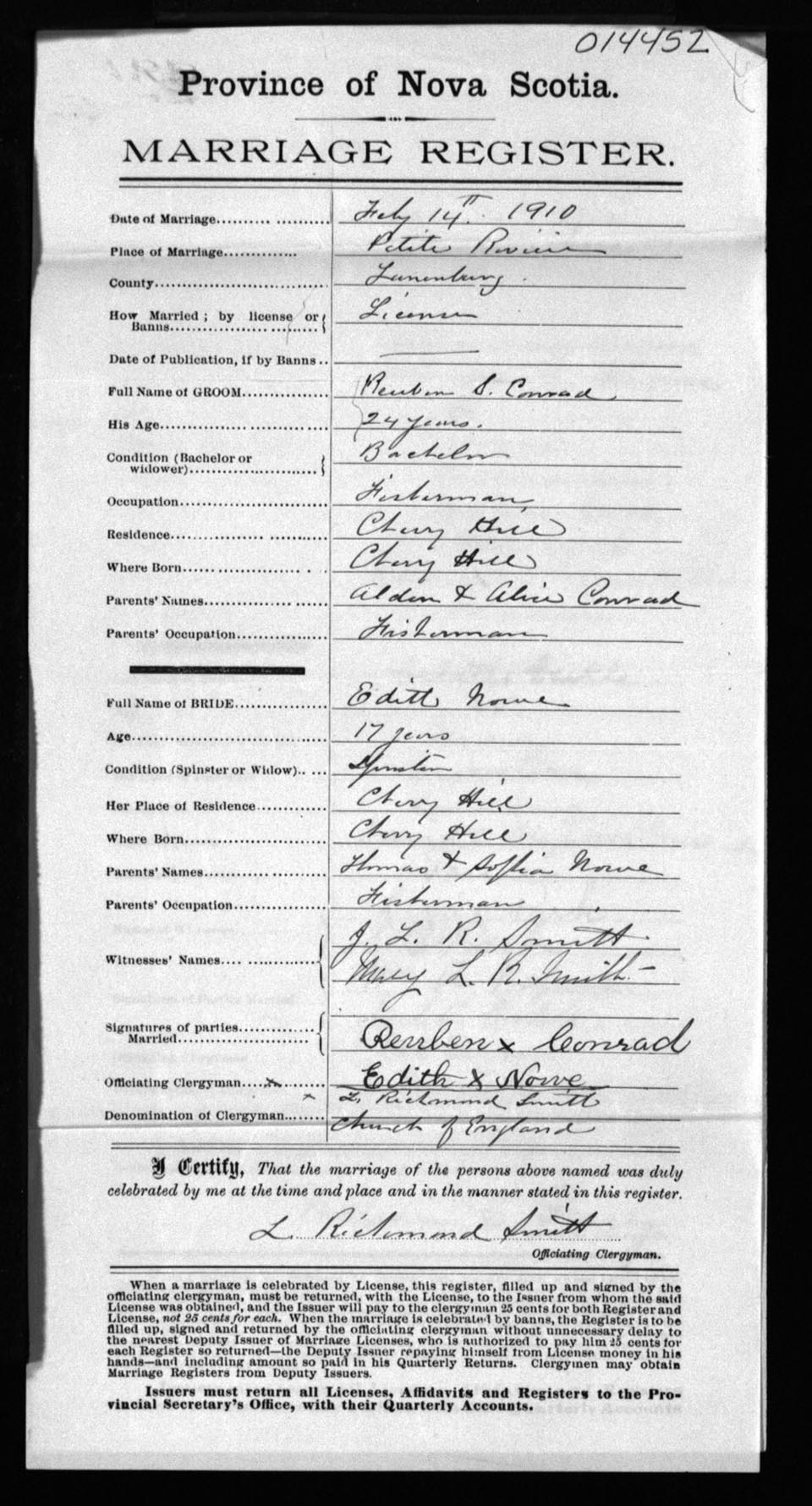 Registration: Year: 1910 number: 14452