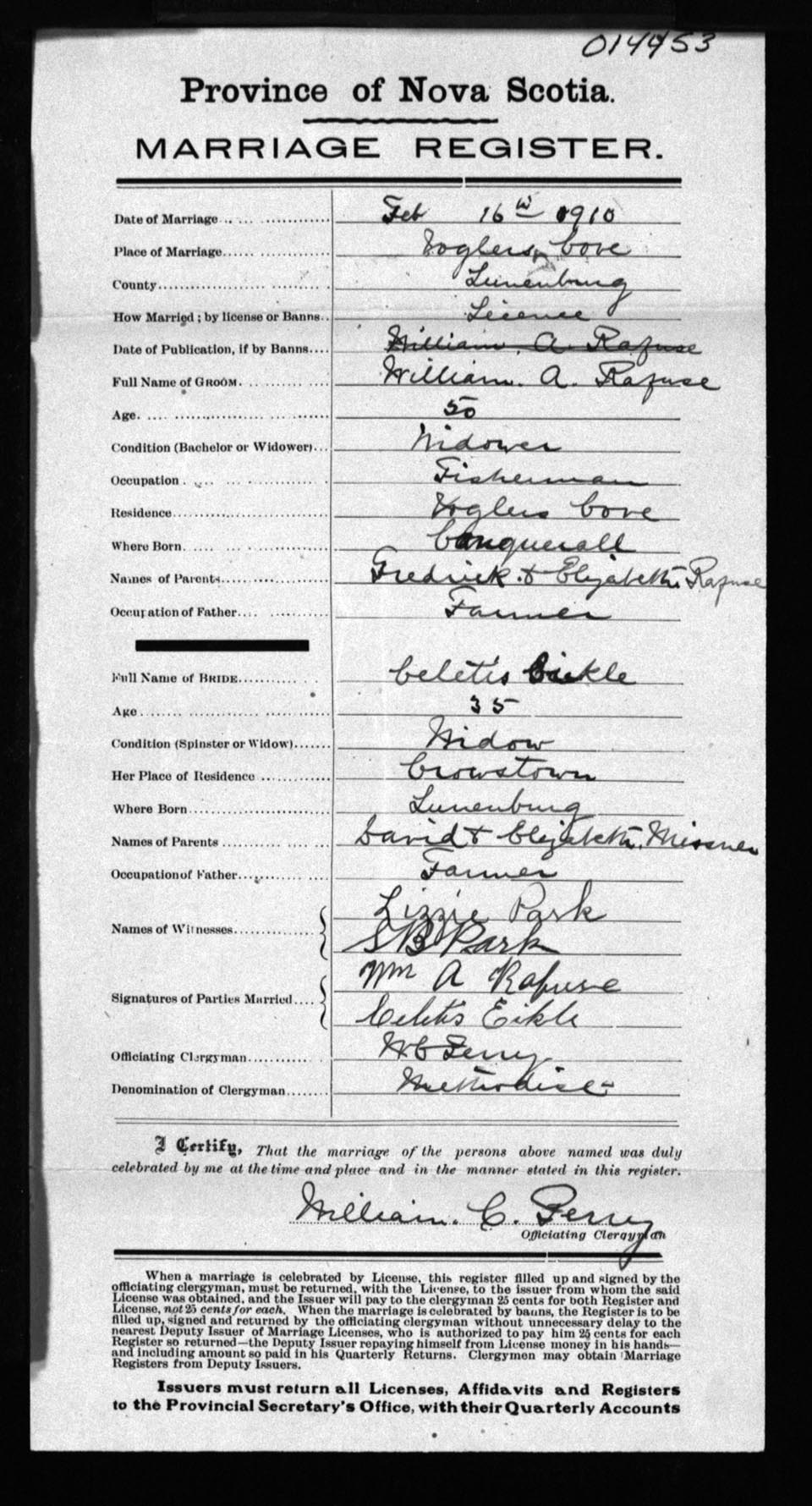 Registration: Year: 1910 number: 14453