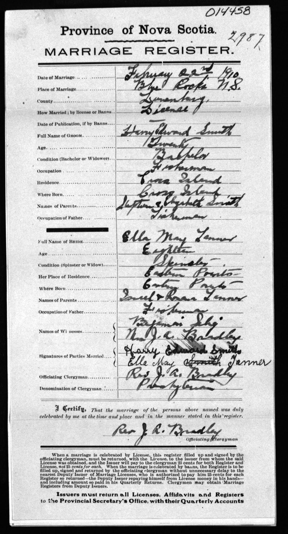 Registration: Year: 1910 number: 14458