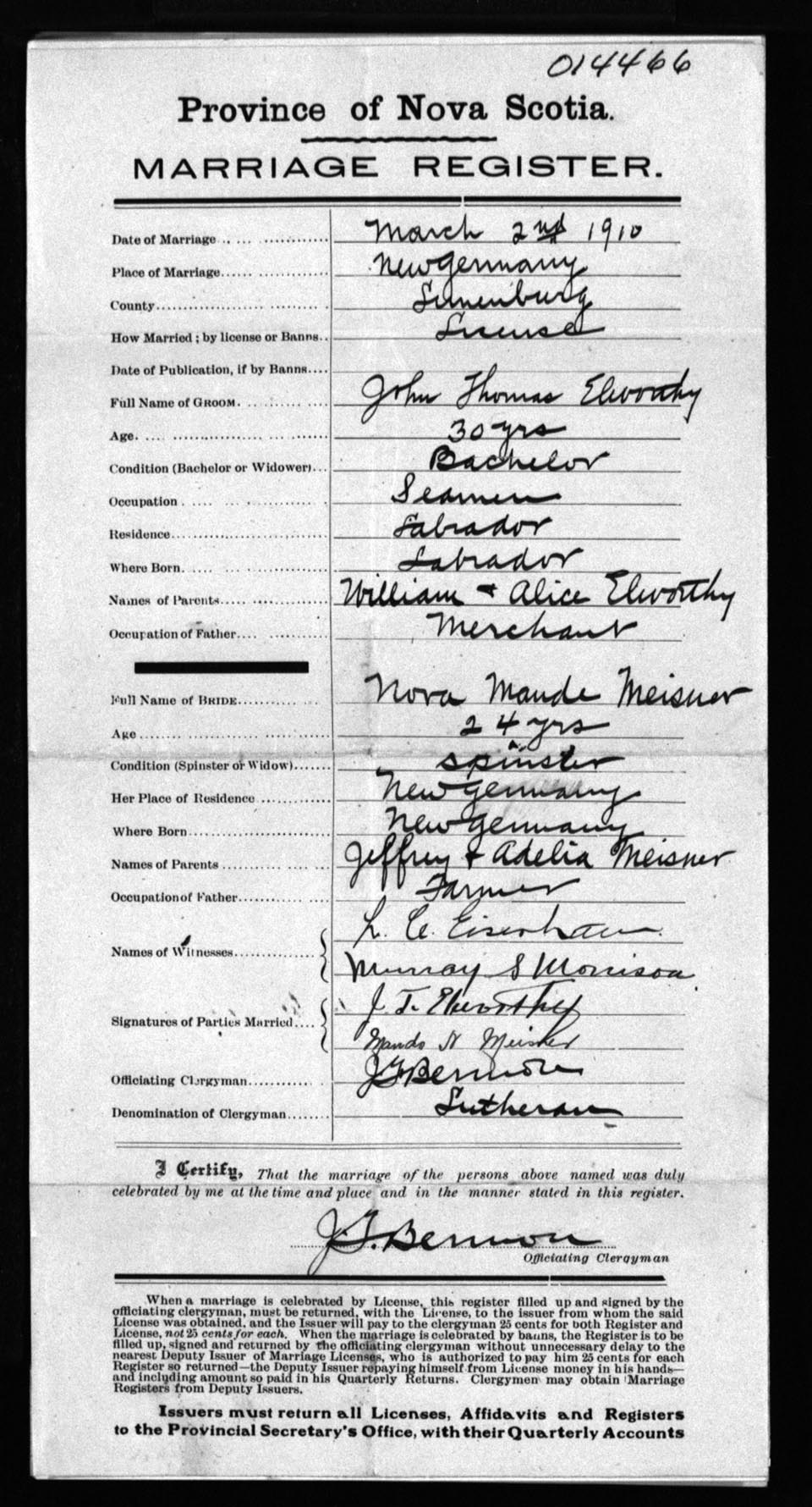 Registration: Year: 1910 number: 14466