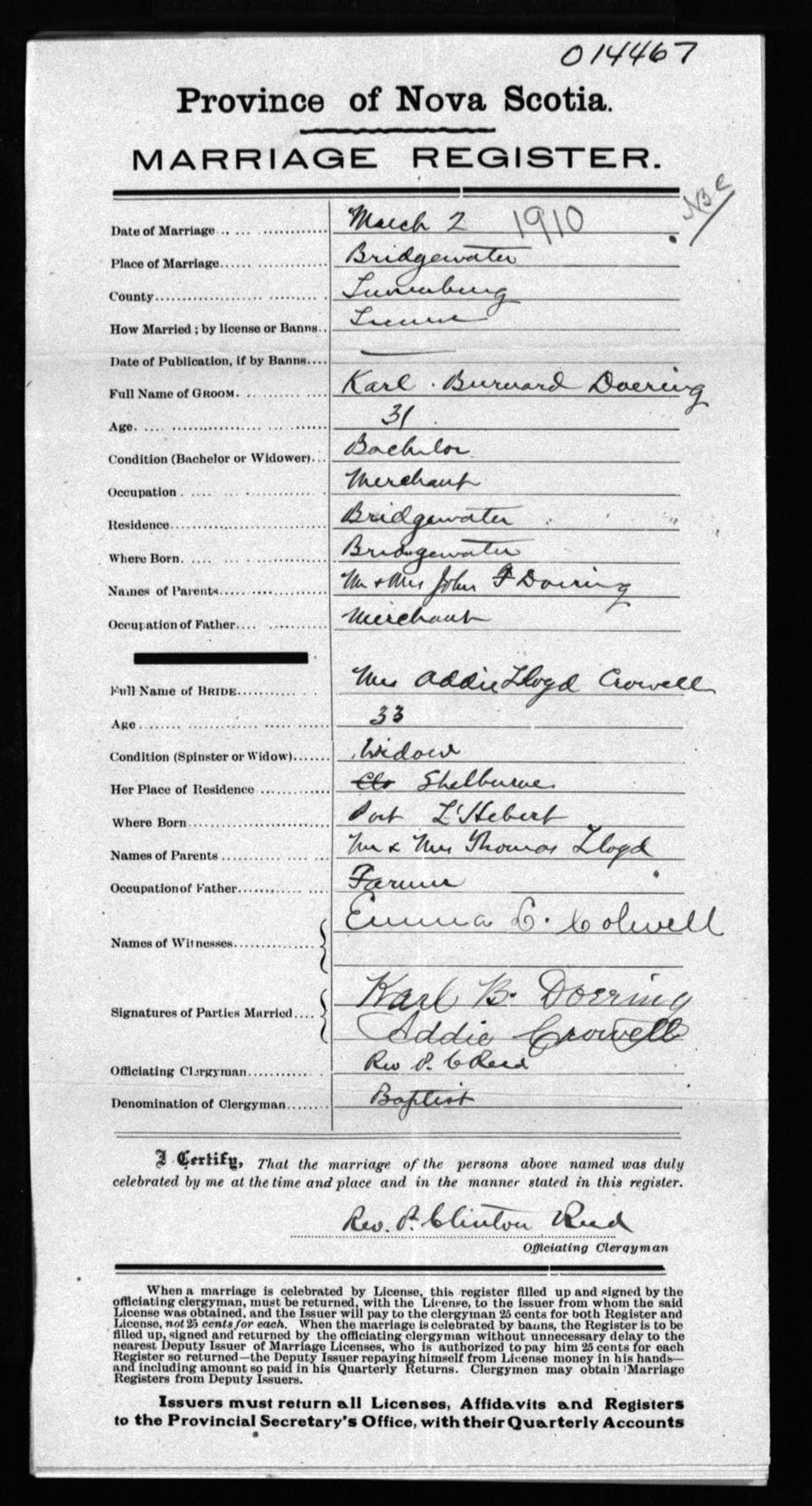 Registration: Year: 1910 number: 14467