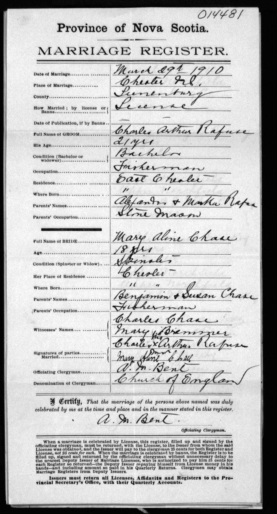 Registration: Year: 1910 number: 14481
