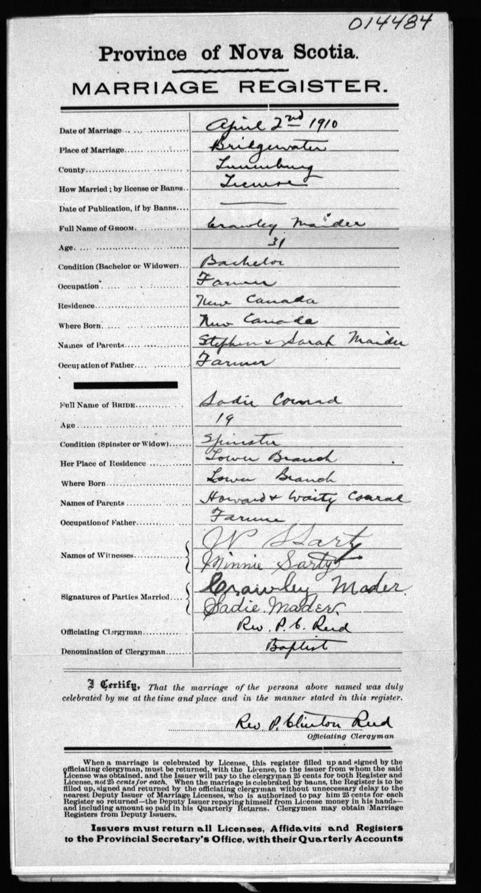 Registration: Year: 1910 number: 14484