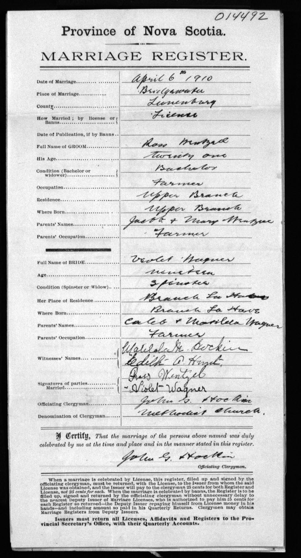Registration: Year: 1910 number: 14492