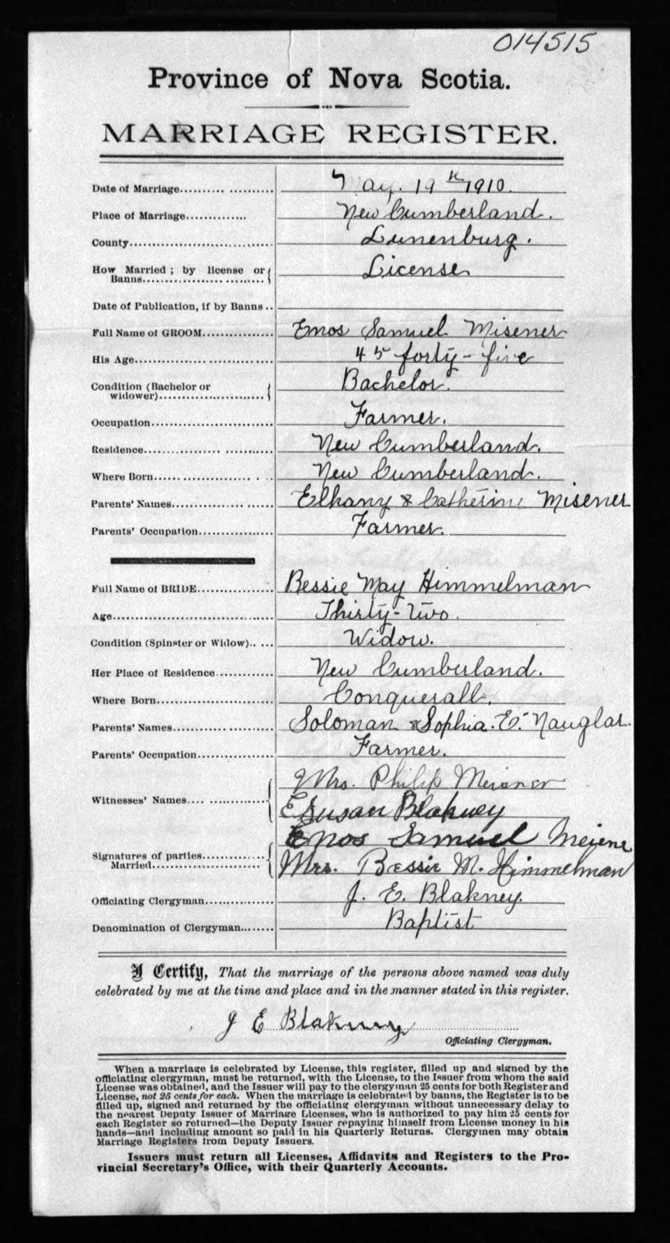 Registration: Year: 1910 number: 14515