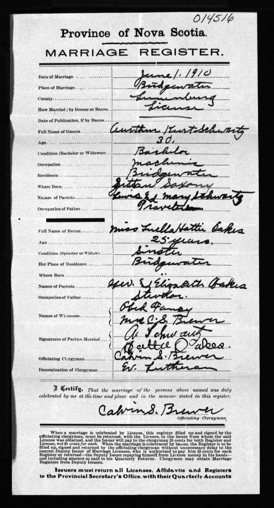Registration: Year: 1910 number: 14516