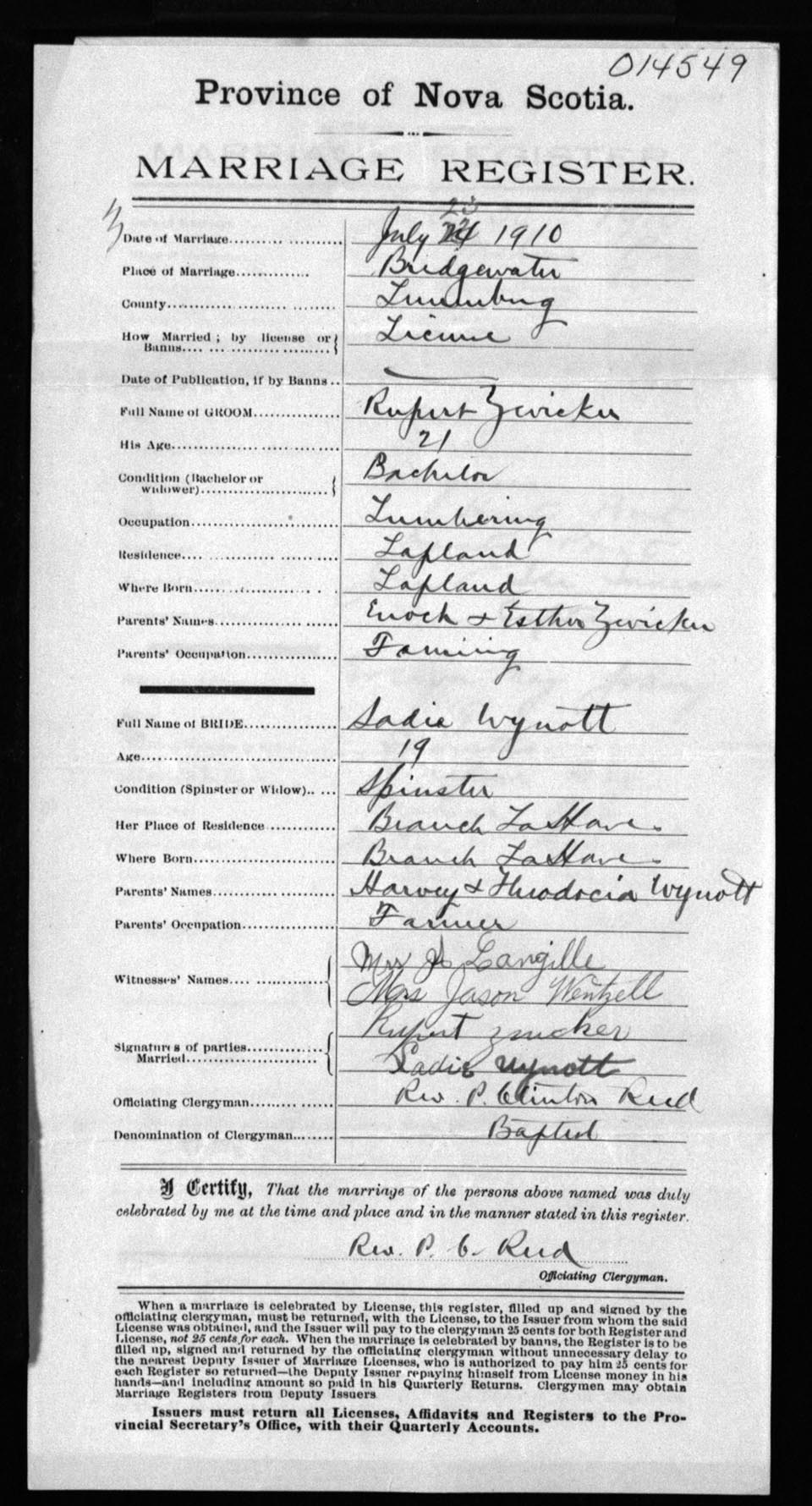 Registration: Year: 1910 number: 14549