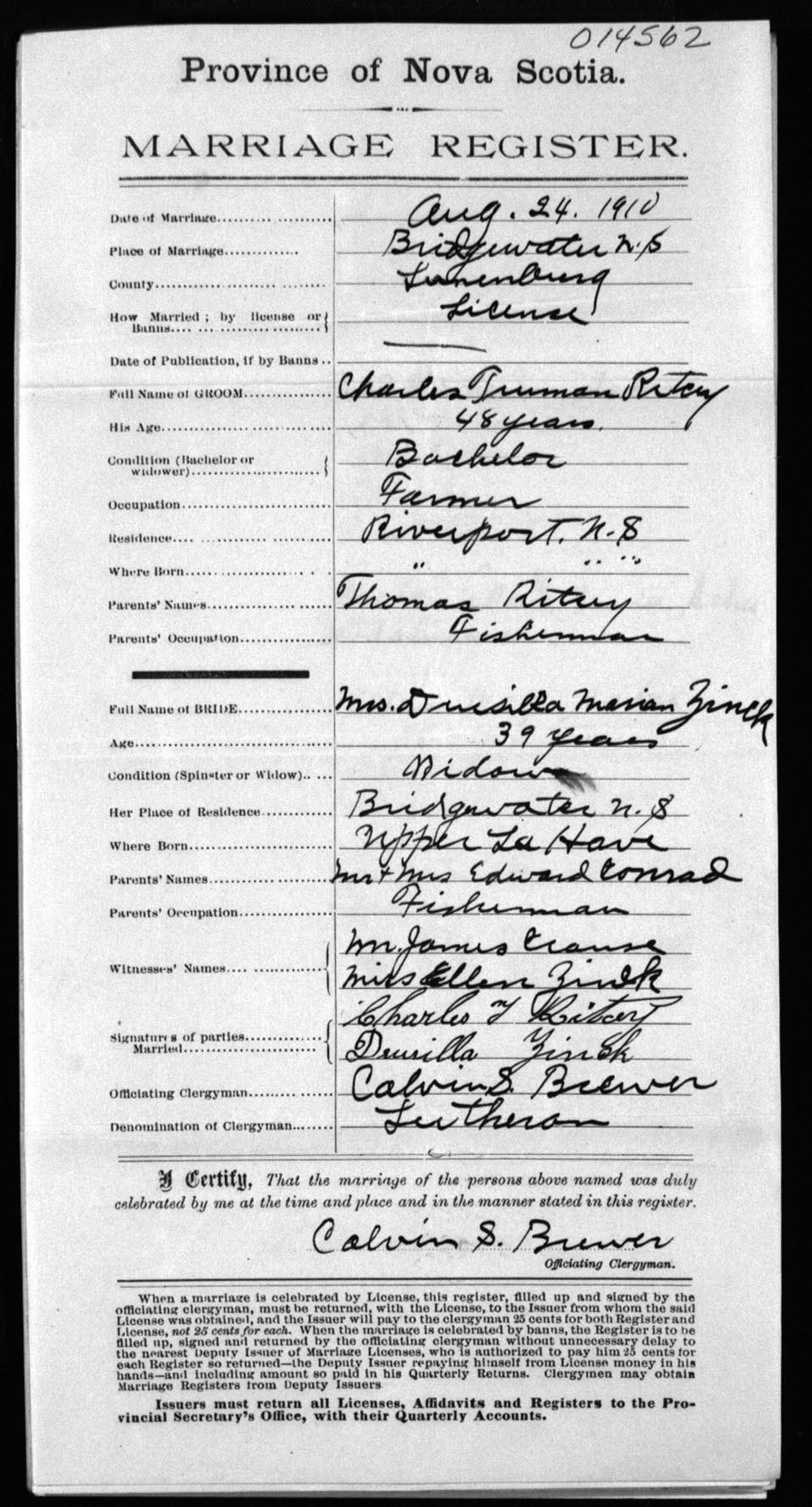 Registration: Year: 1910 number: 14562
