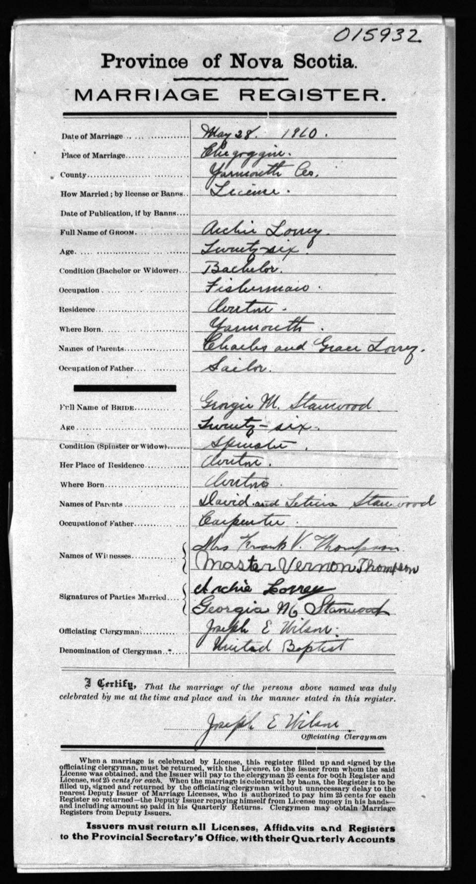 Registration: Year: 1910 number: 15932