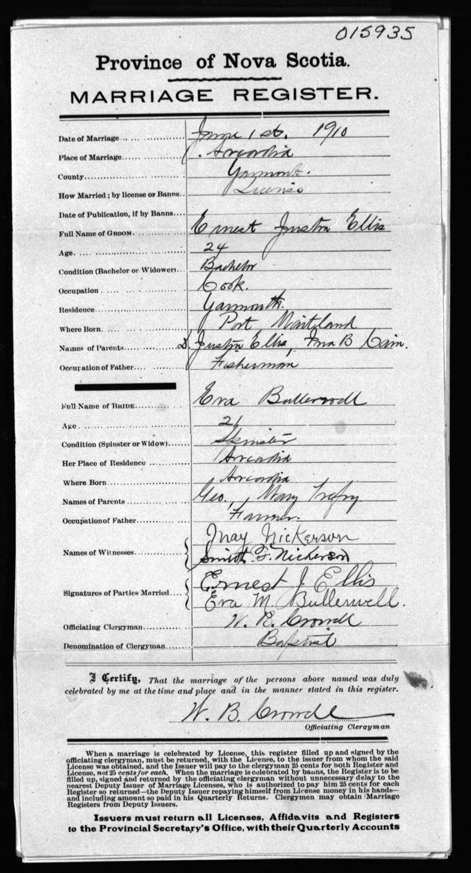 Registration: Year: 1910 number: 15935