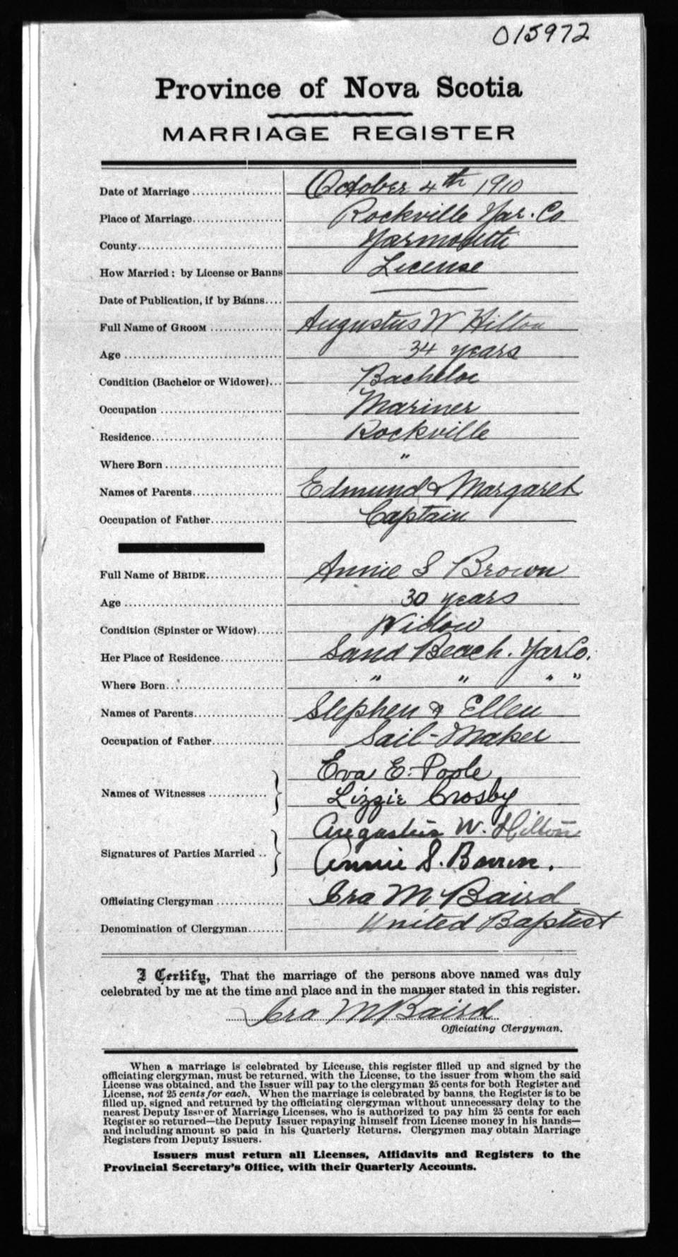 Registration: Year: 1910 number: 15972