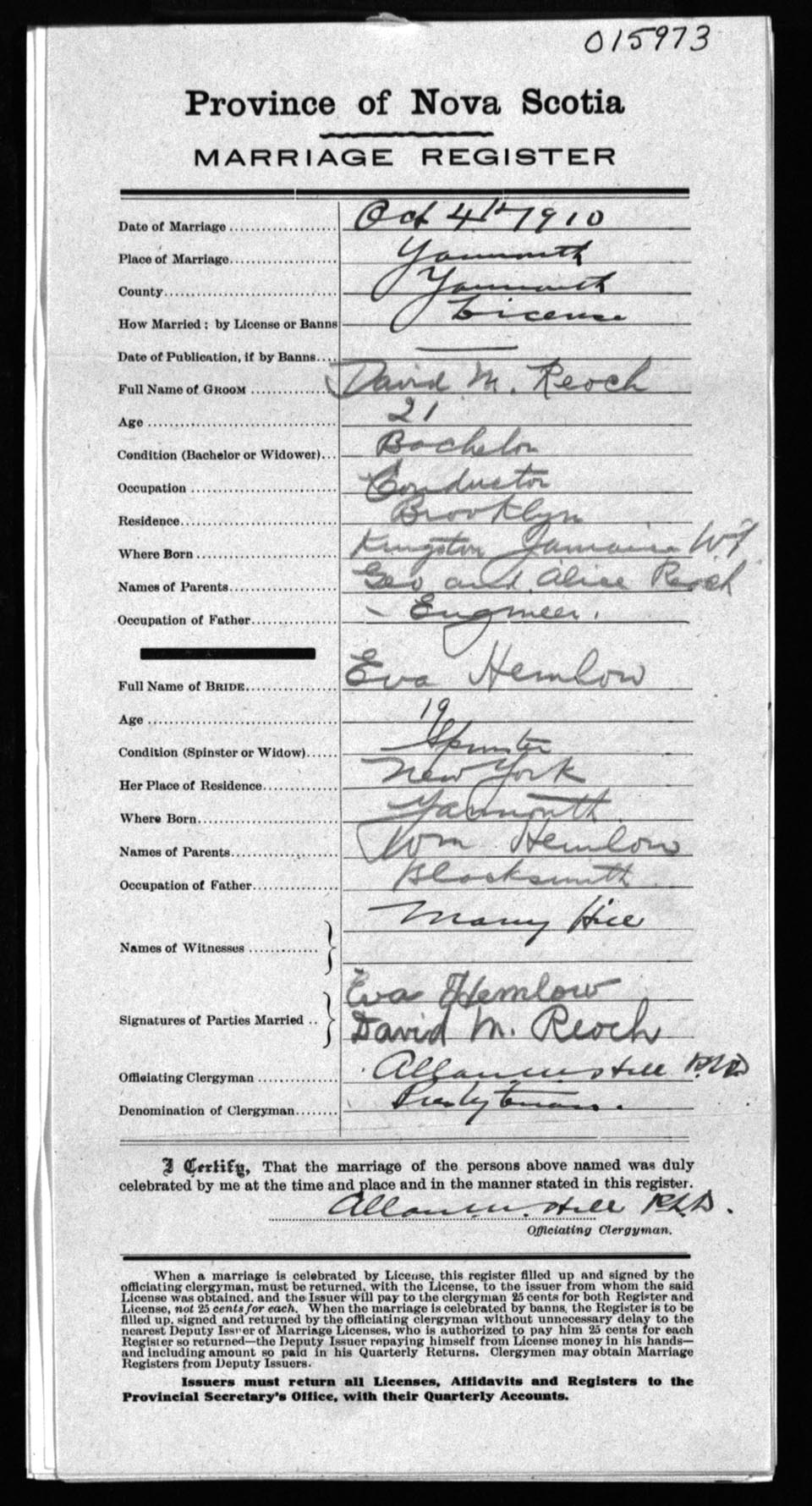 Registration: Year: 1910 number: 15973