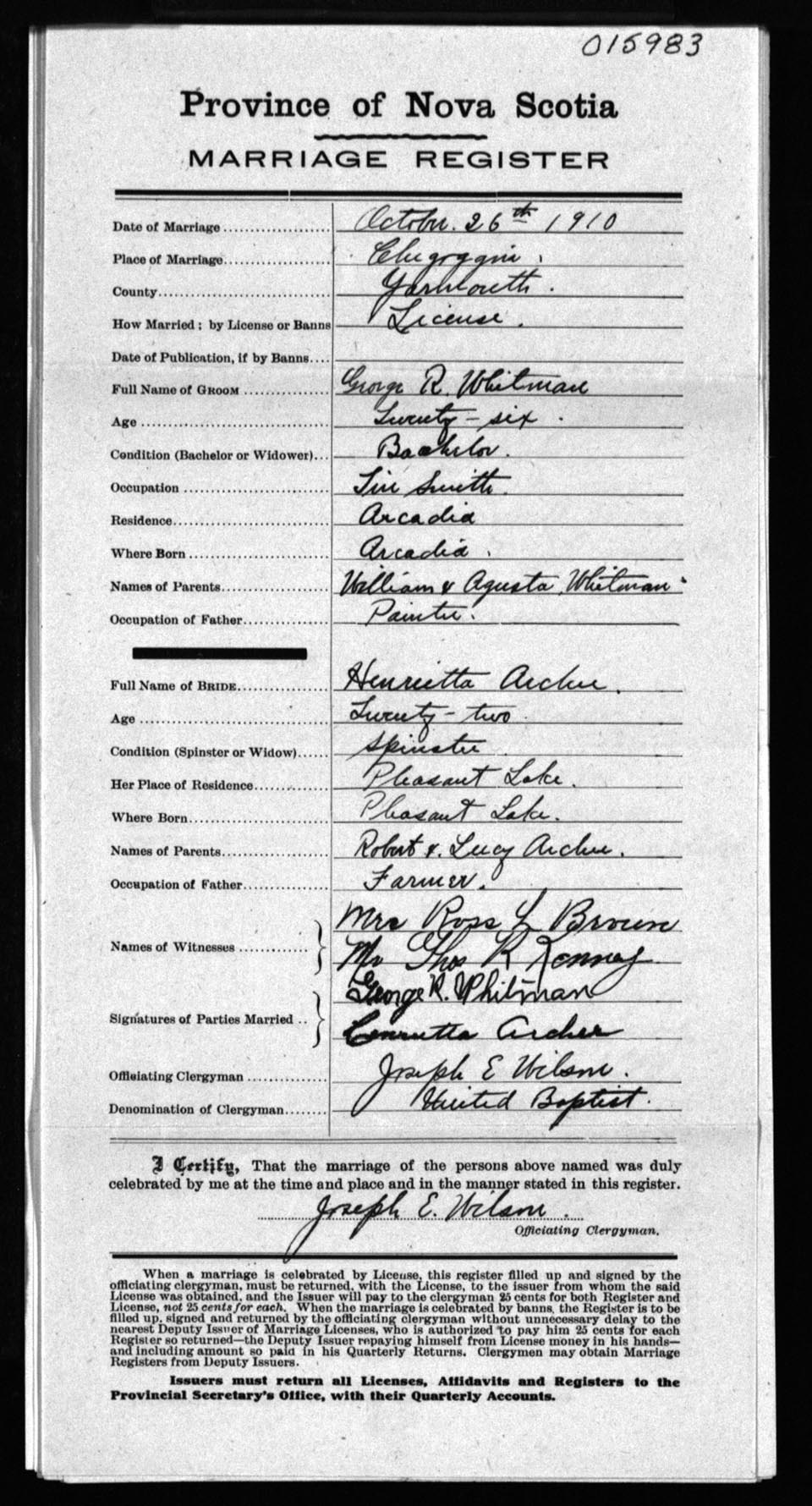 Registration: Year: 1910 number: 15983