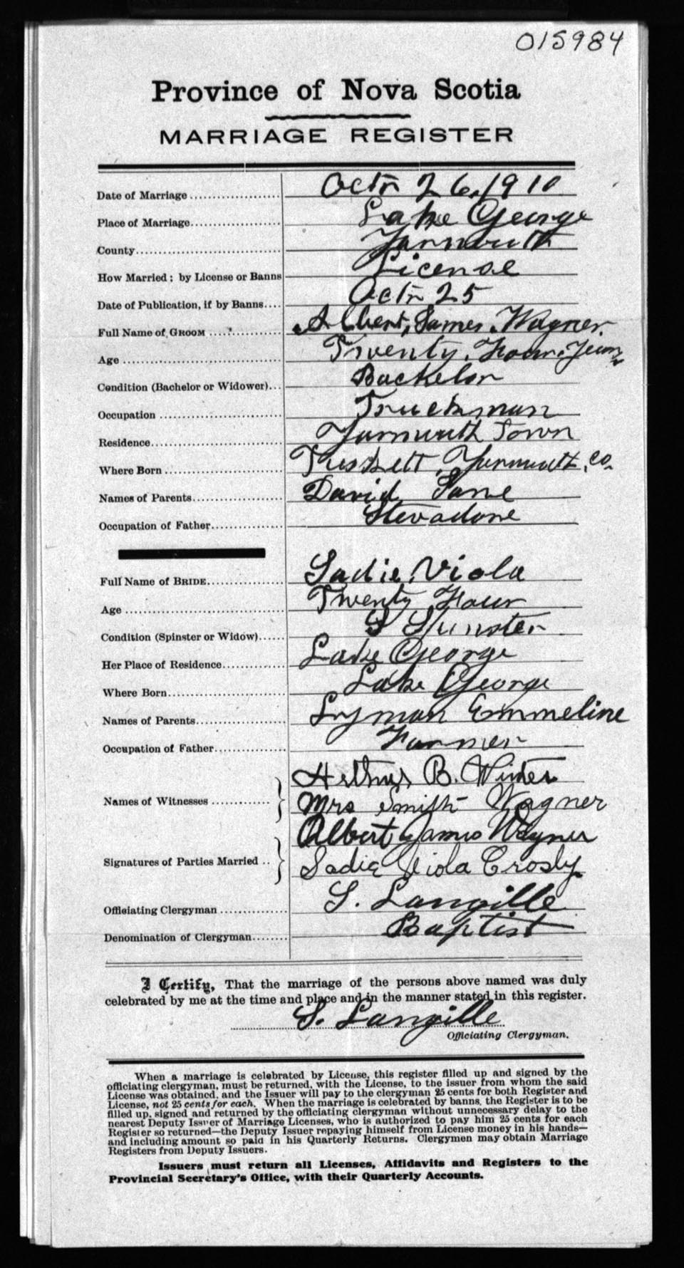 Registration: Year: 1910 number: 15984