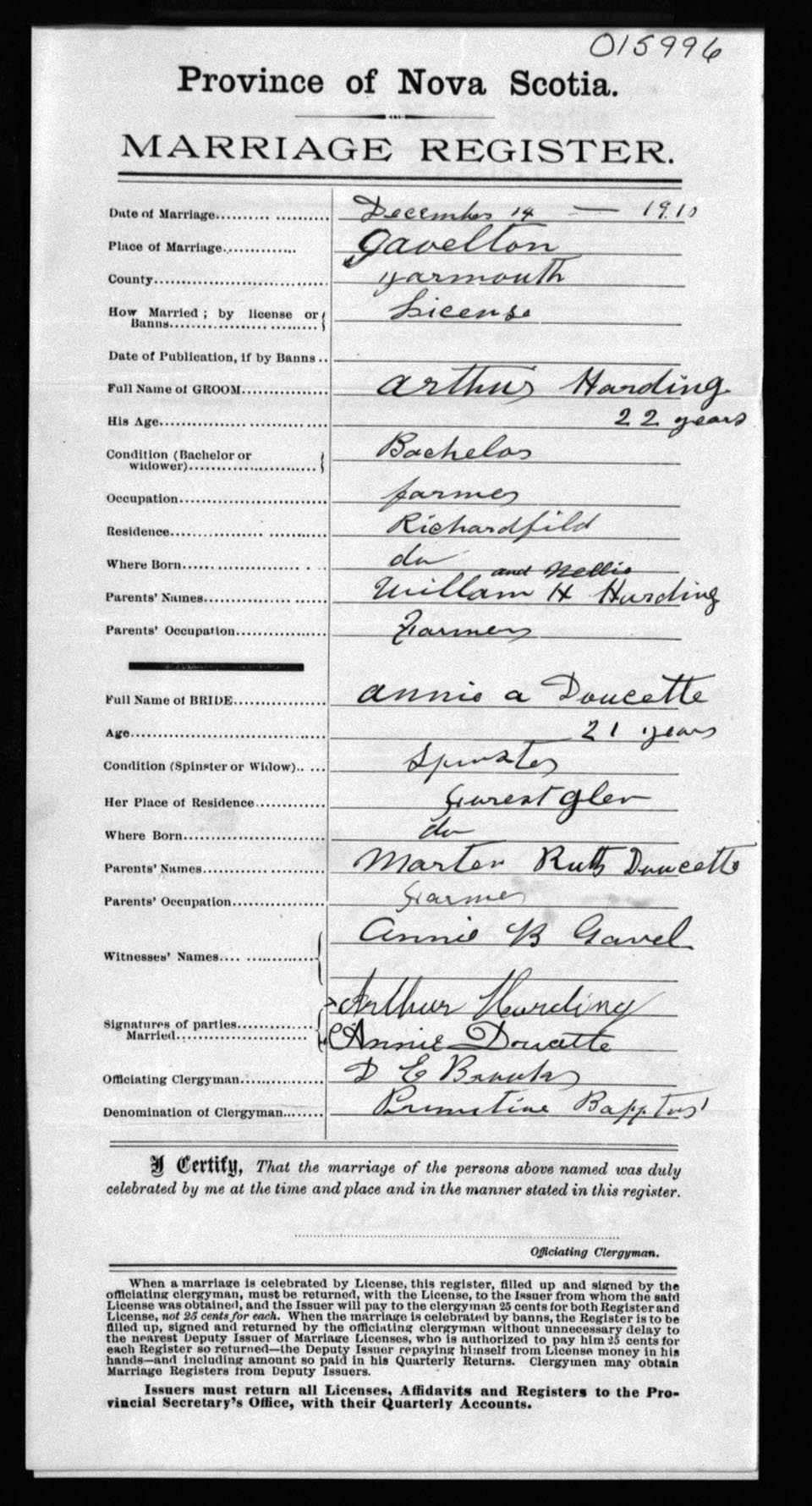 Registration: Year: 1910 number: 15996