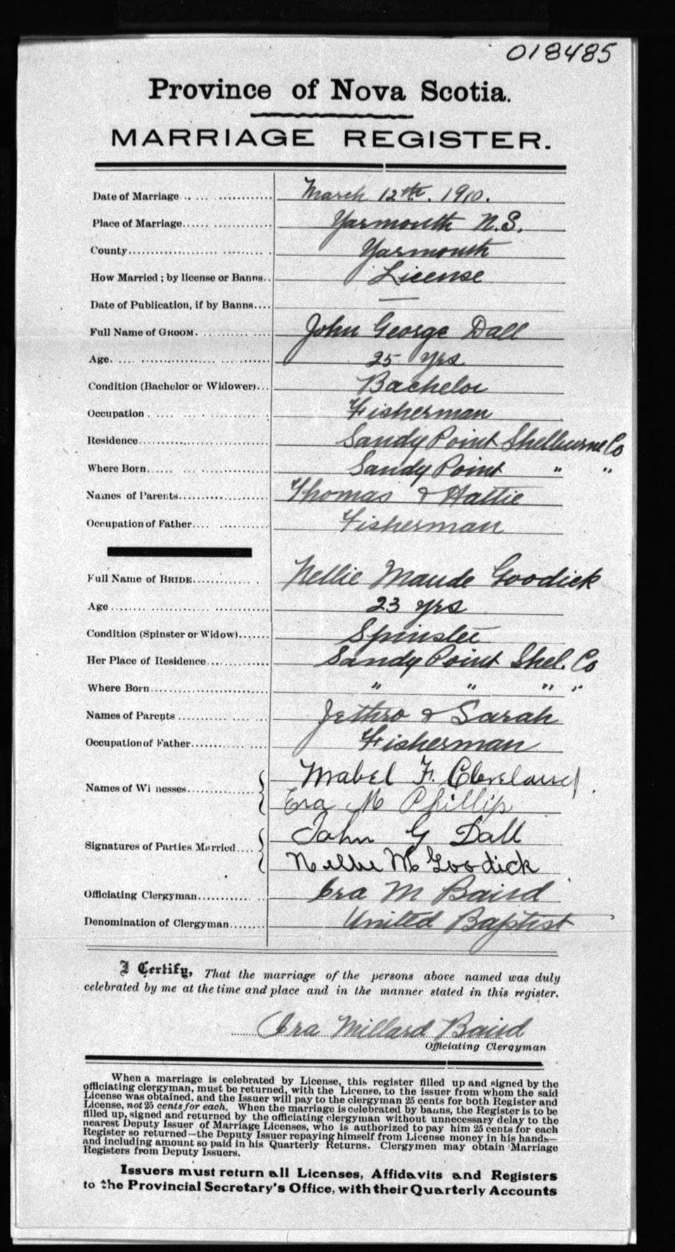 Registration: Year: 1910 number: 18485
